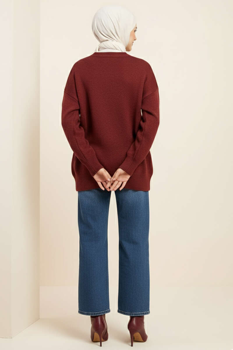 Yan Yırtmaçlı Yumoş Uzun Triko Tunik Yağ Yeşili