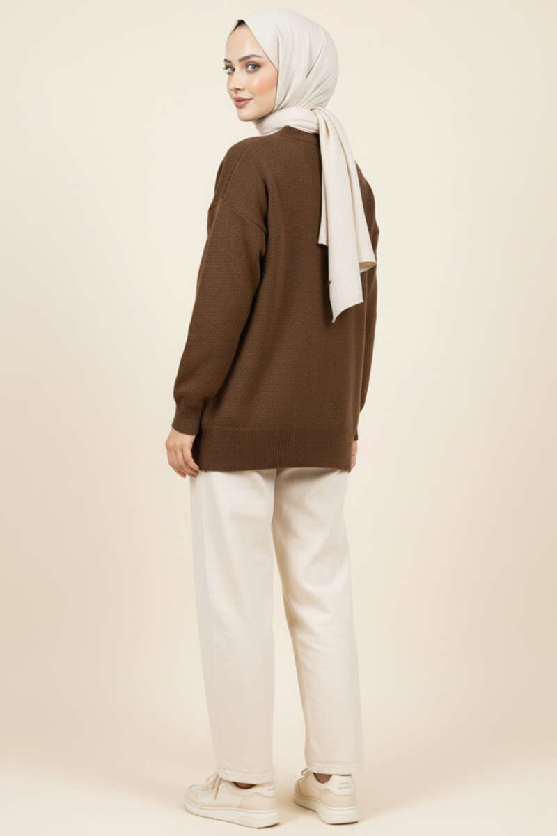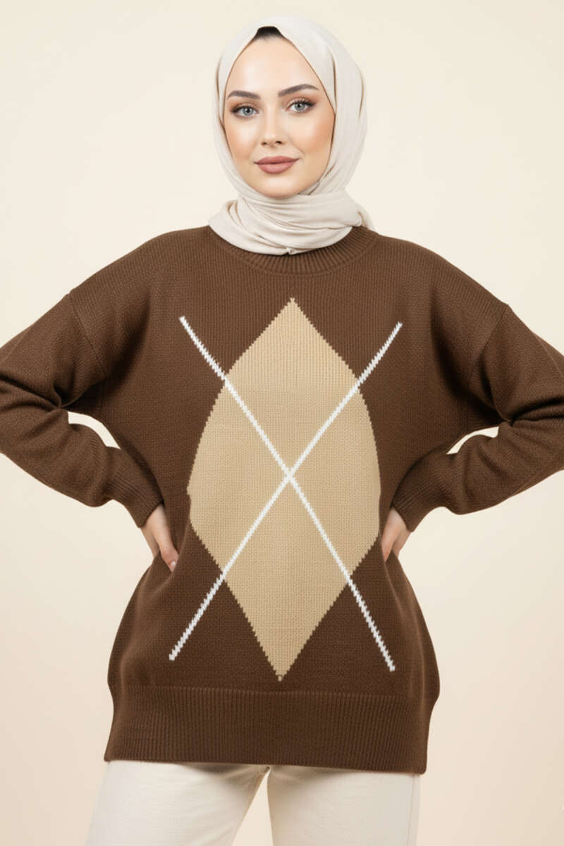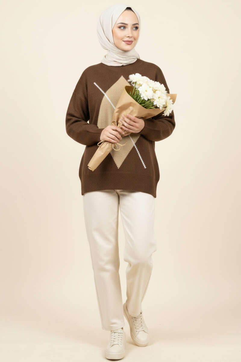 Baklava Desen Triko Kazak Kahve Latte