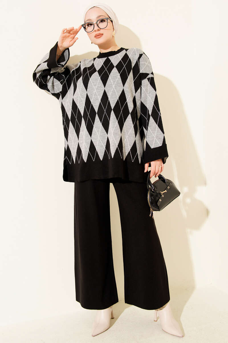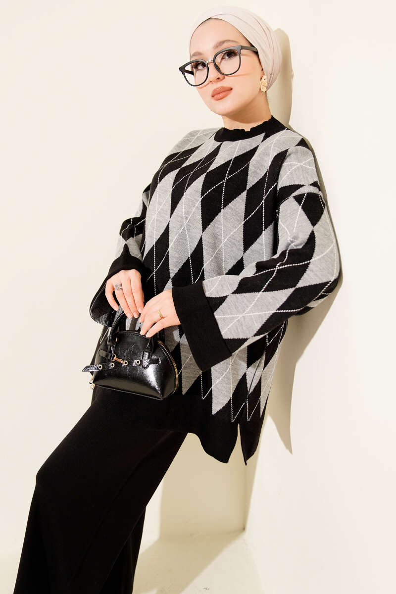 Boğazlı Örgü Kabartmalı Triko Tunik Vizon