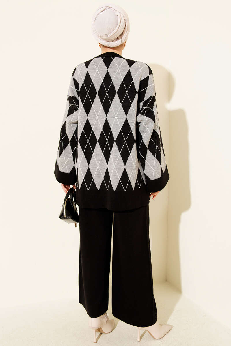 Leopar Desenli Şardonlu Triko Hırka Latte