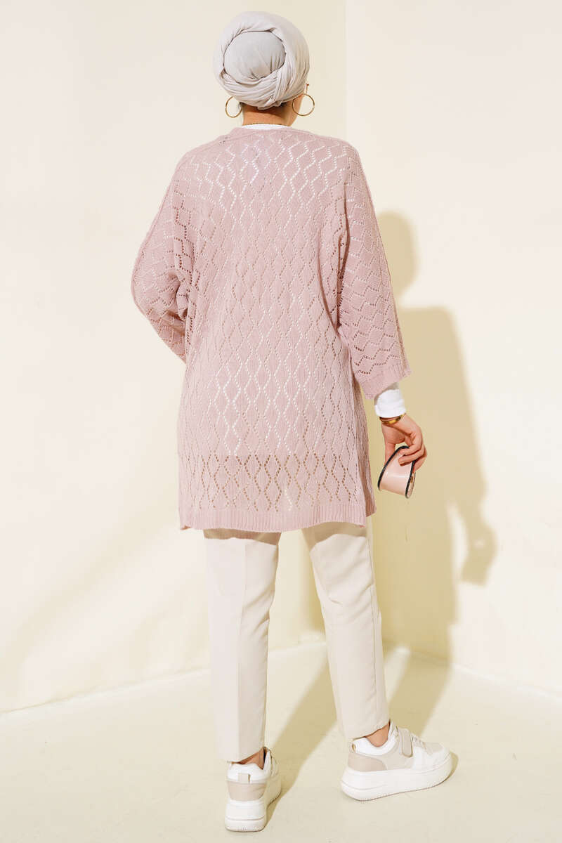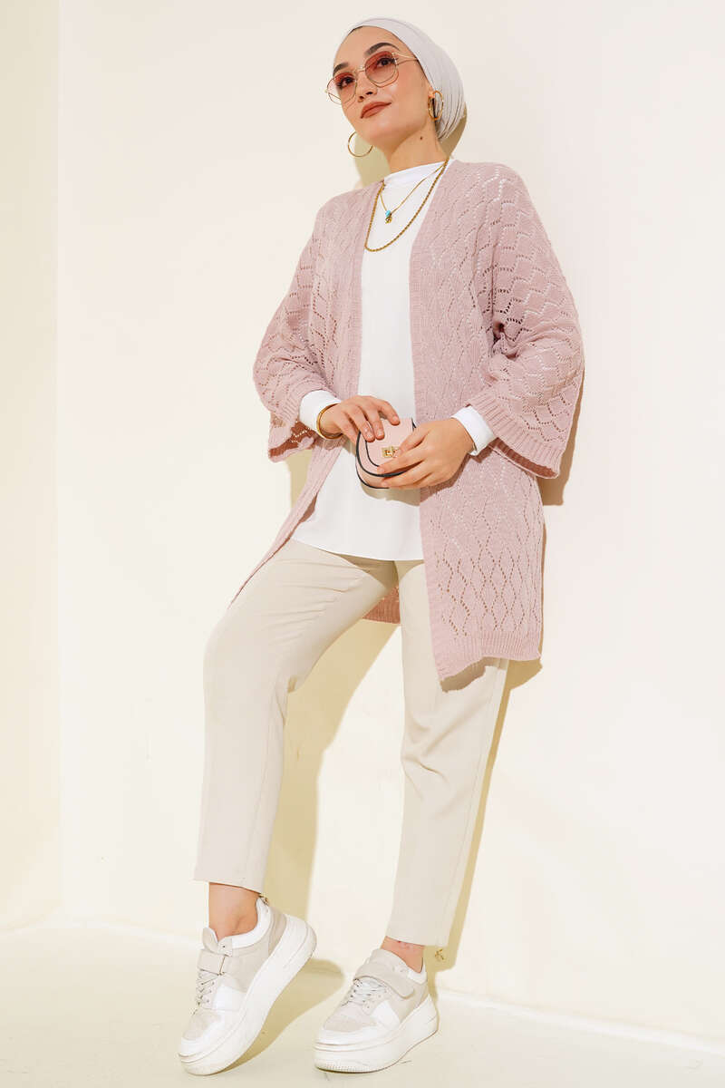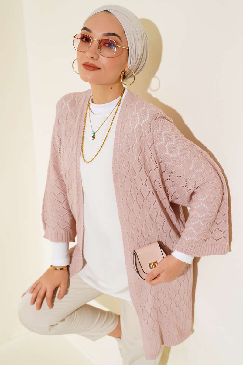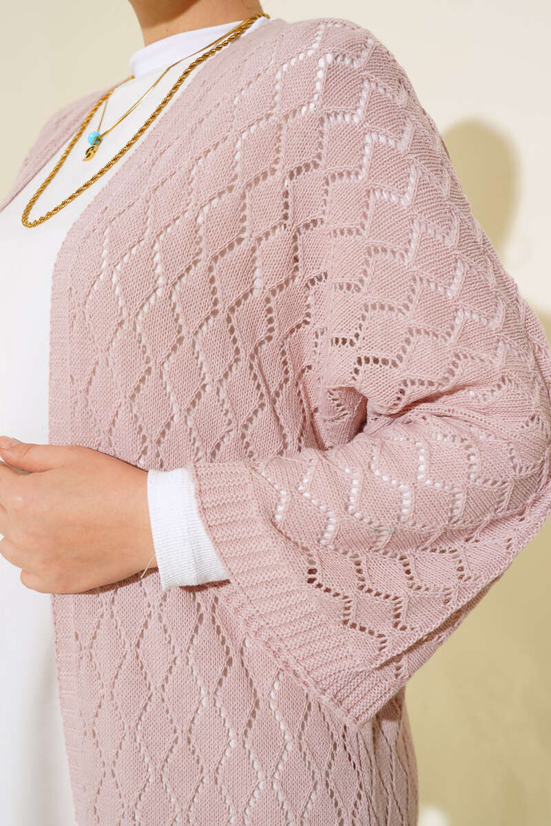 Baklava Desen Yarasa Kol Hırka Pudra