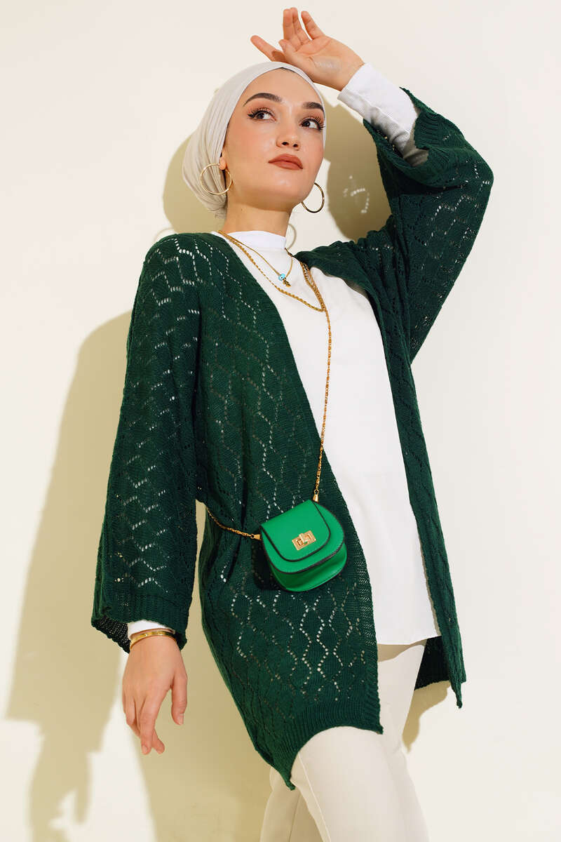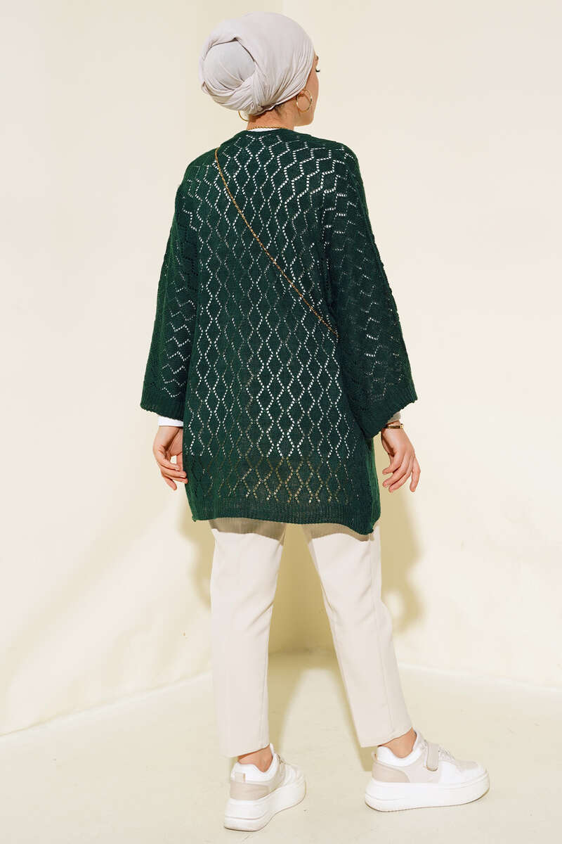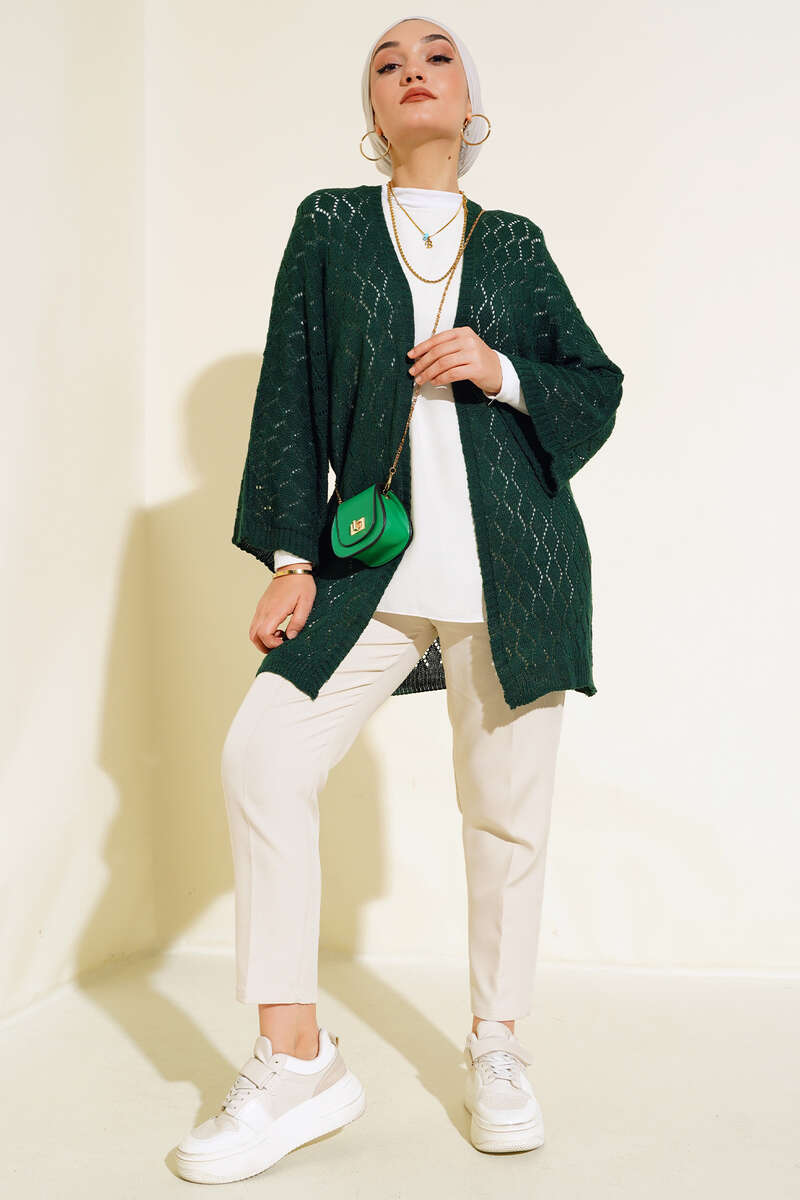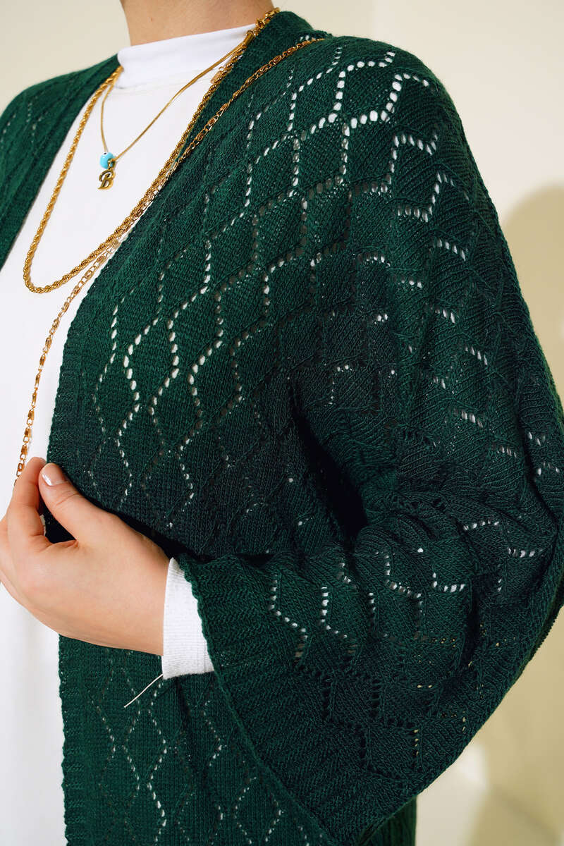 Baklava Desen Yarasa Kol Hırka Zümrüt