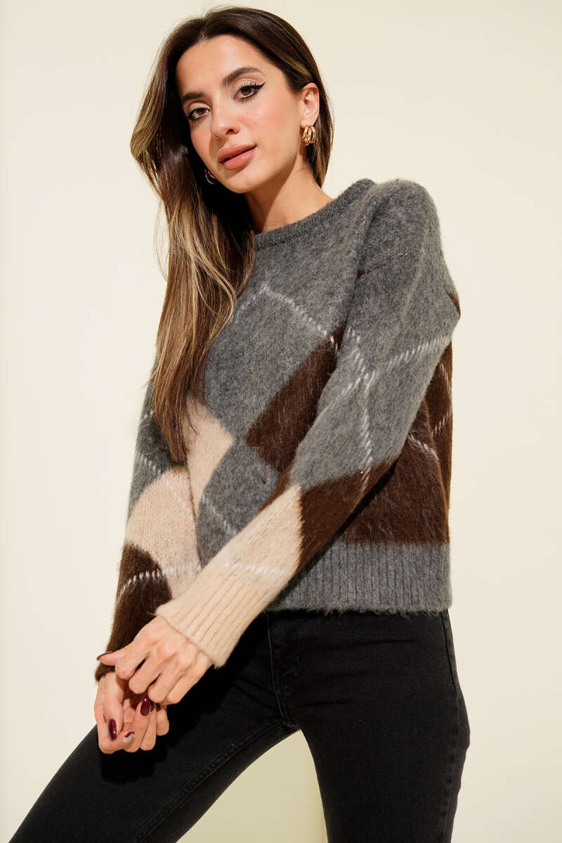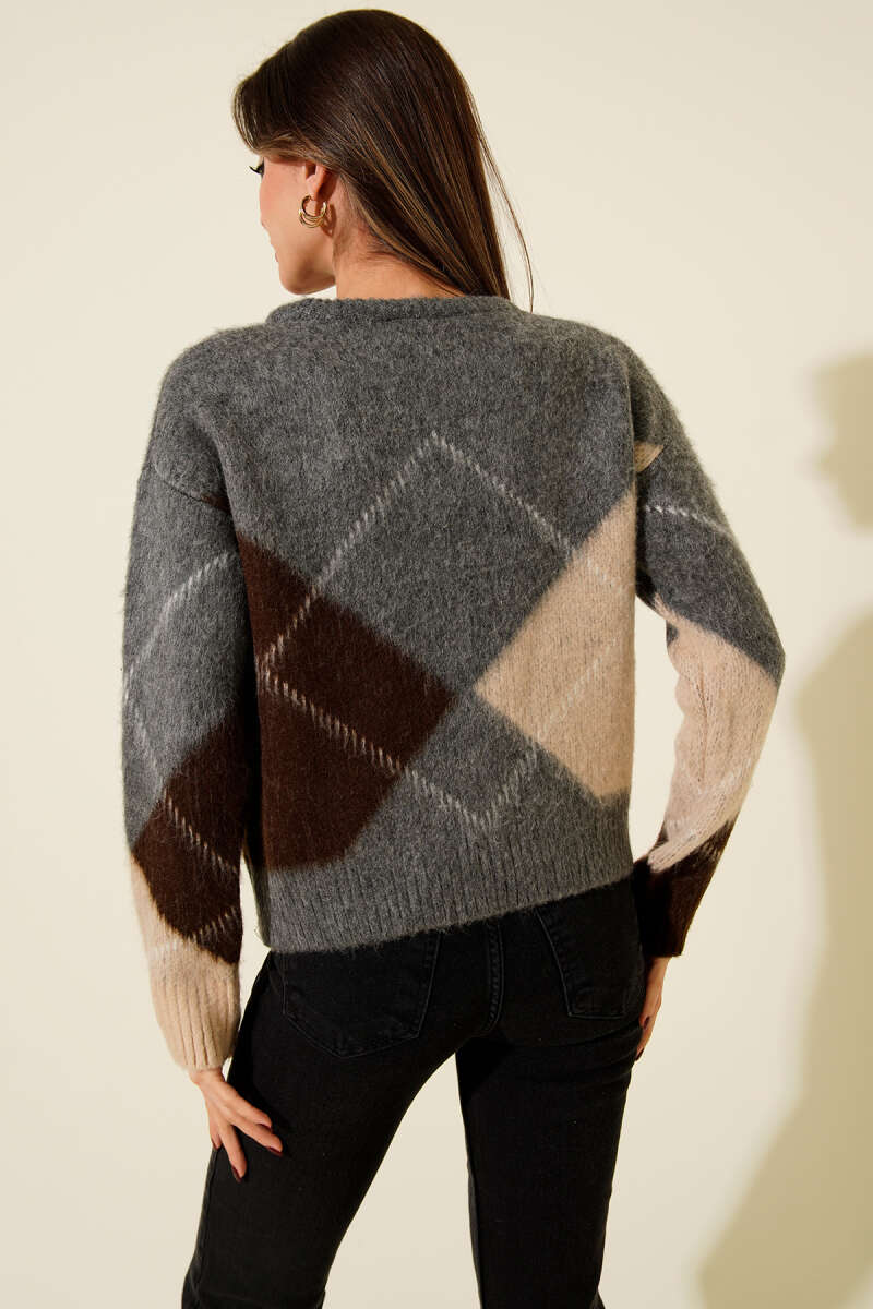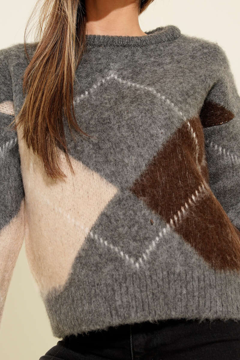 Baklava Desen Yumoş Triko Kazak Gri