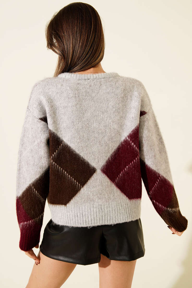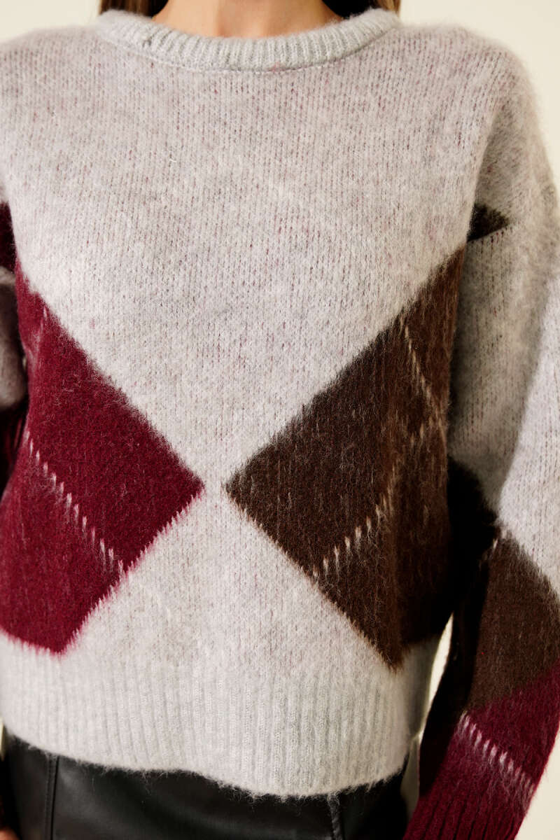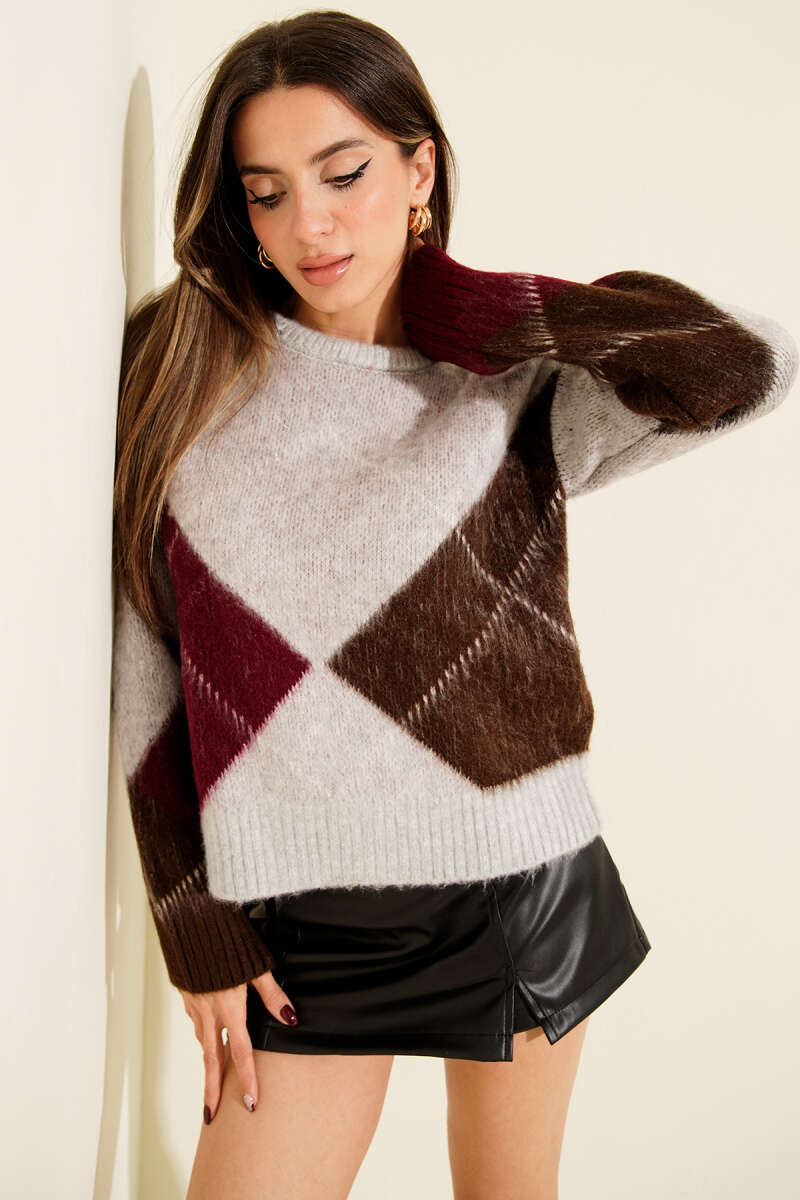 Baklava Desen Yumoş Triko Kazak Füme