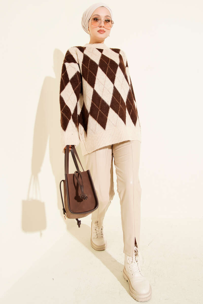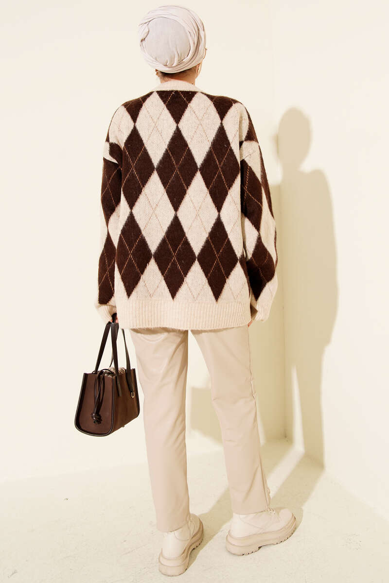 Yatay Çizgi Detaylı Basic Triko Tunik Kahve