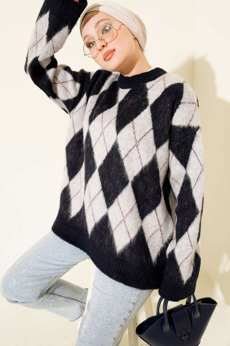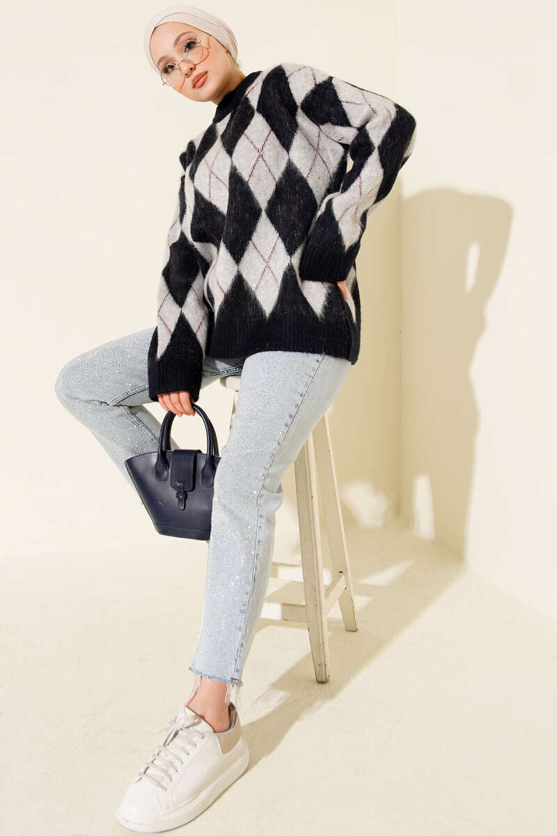 Gömlek Yaka Fularlı Triko Tunik Siyah