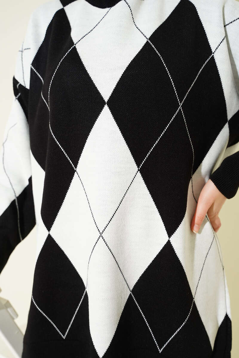 Basic Yatay Çizgi Detaylı Triko Tunik Bordo