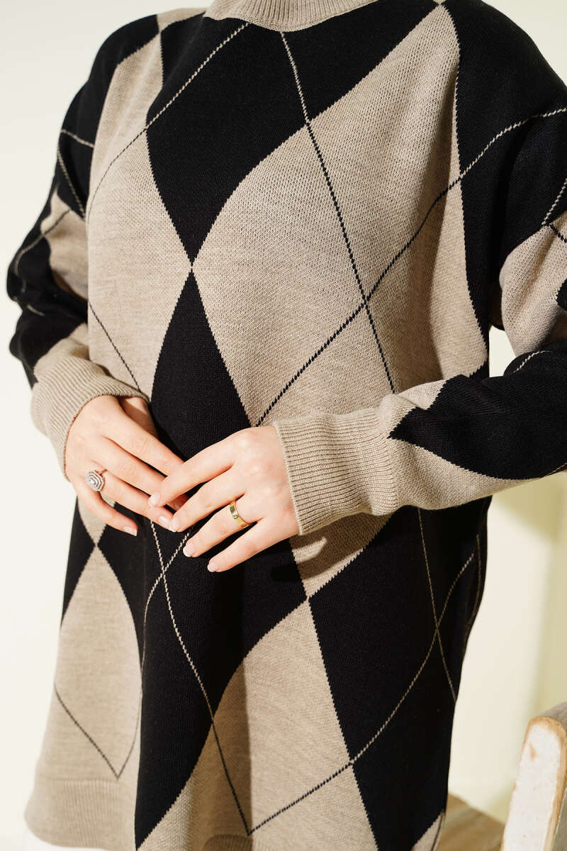 Baklava Desenli Basic Triko Tunik Taş