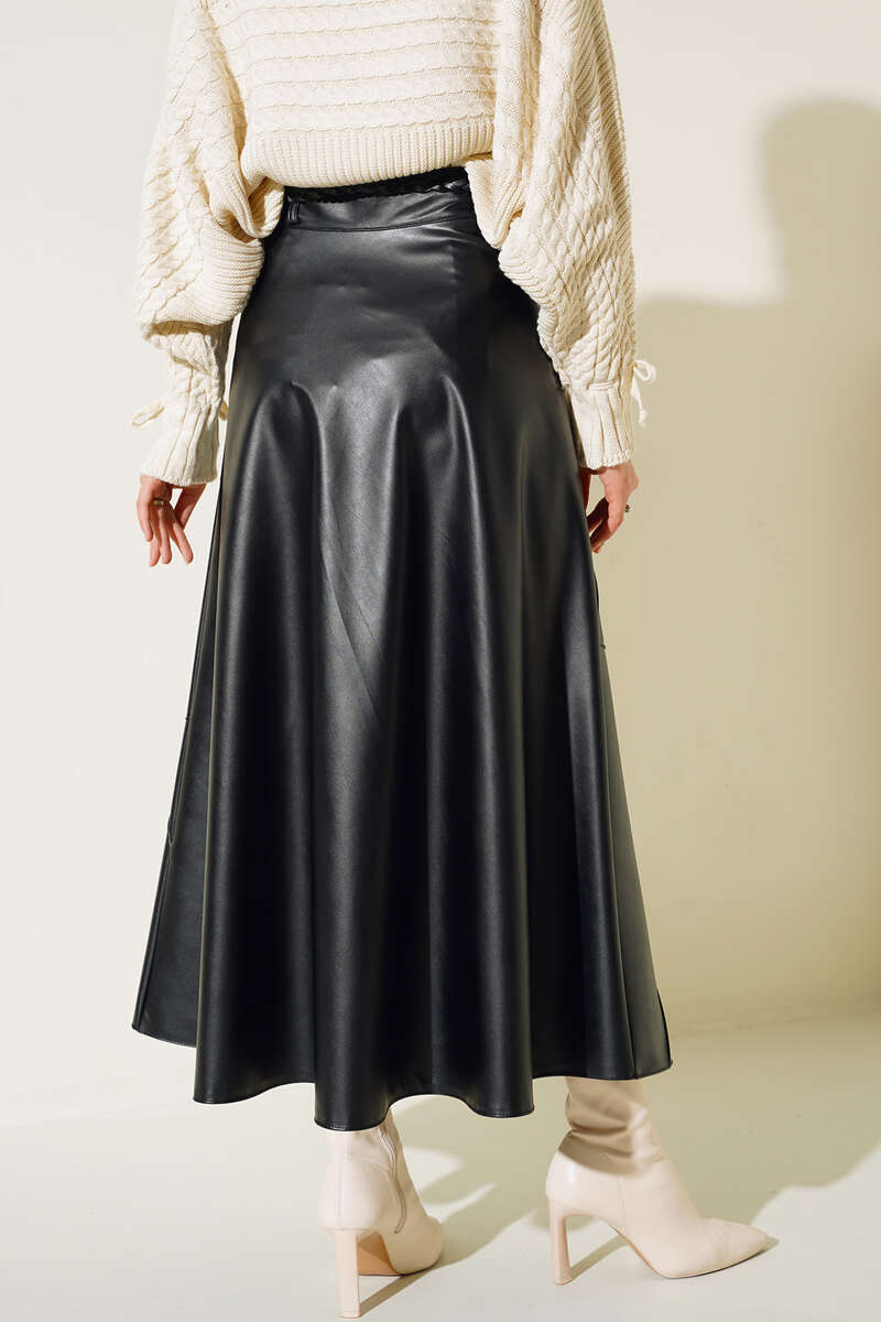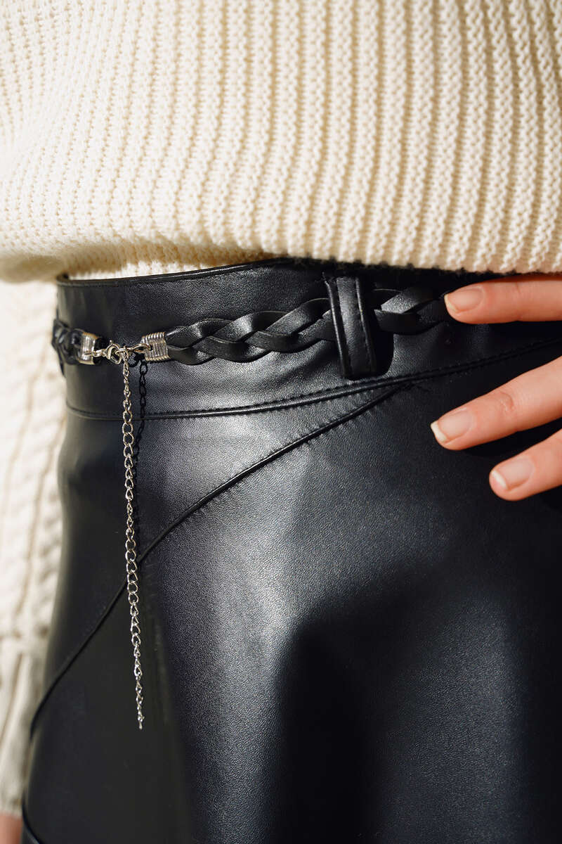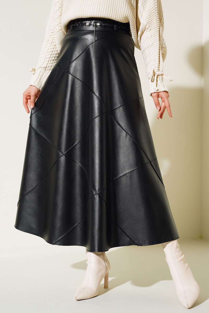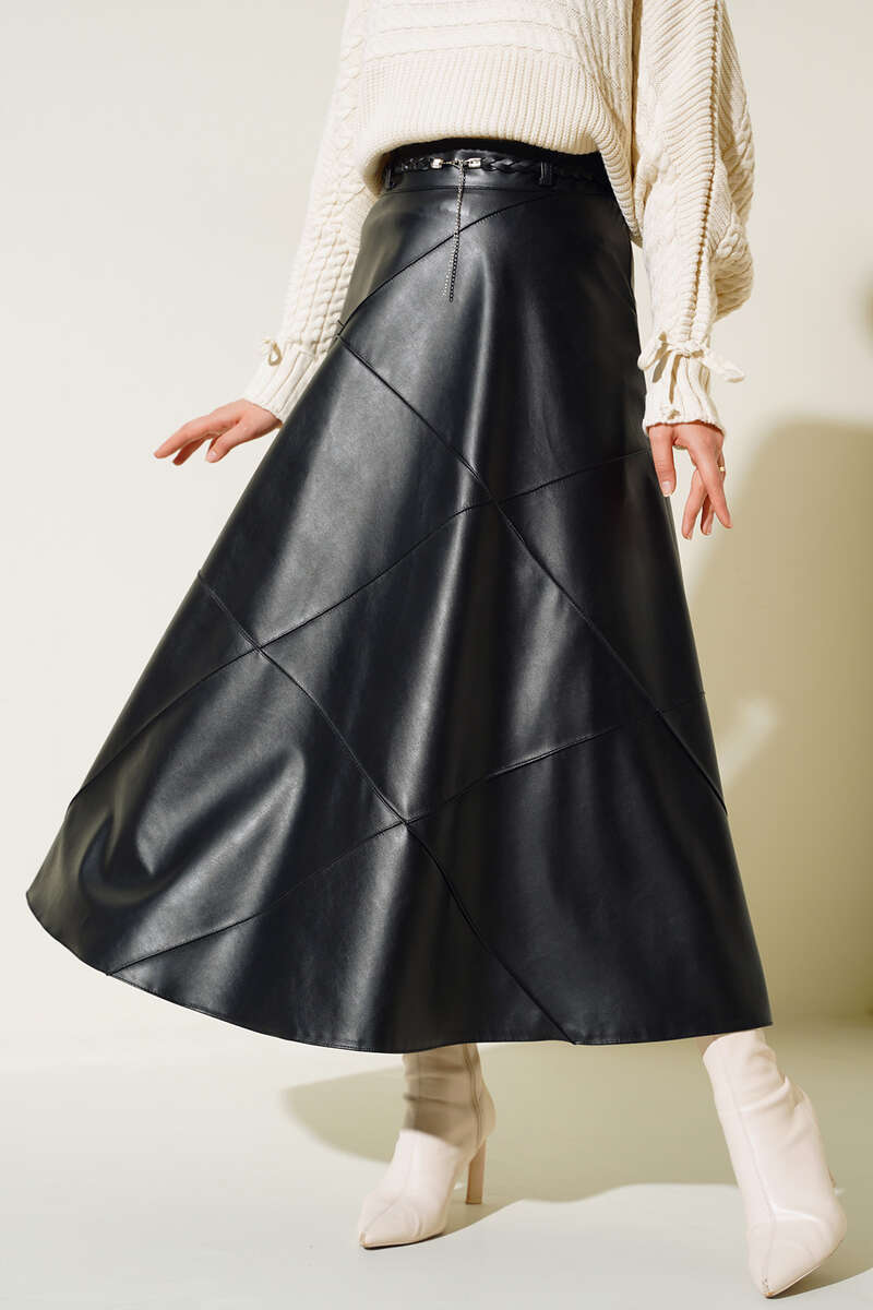 Yeni sezon deri eteğimiz kombinlerinizin kurtarıcı parçası olacak. Baklava desenli olan eteğimizin kemeri mevcuttur. Dört adet kemer köprüsü bulunmaktadır. Cepsiz yandan fermuarlı modeldir. Mevsim geçişlerinde çok beğenerek giyeceğiniz parça olacaktır.