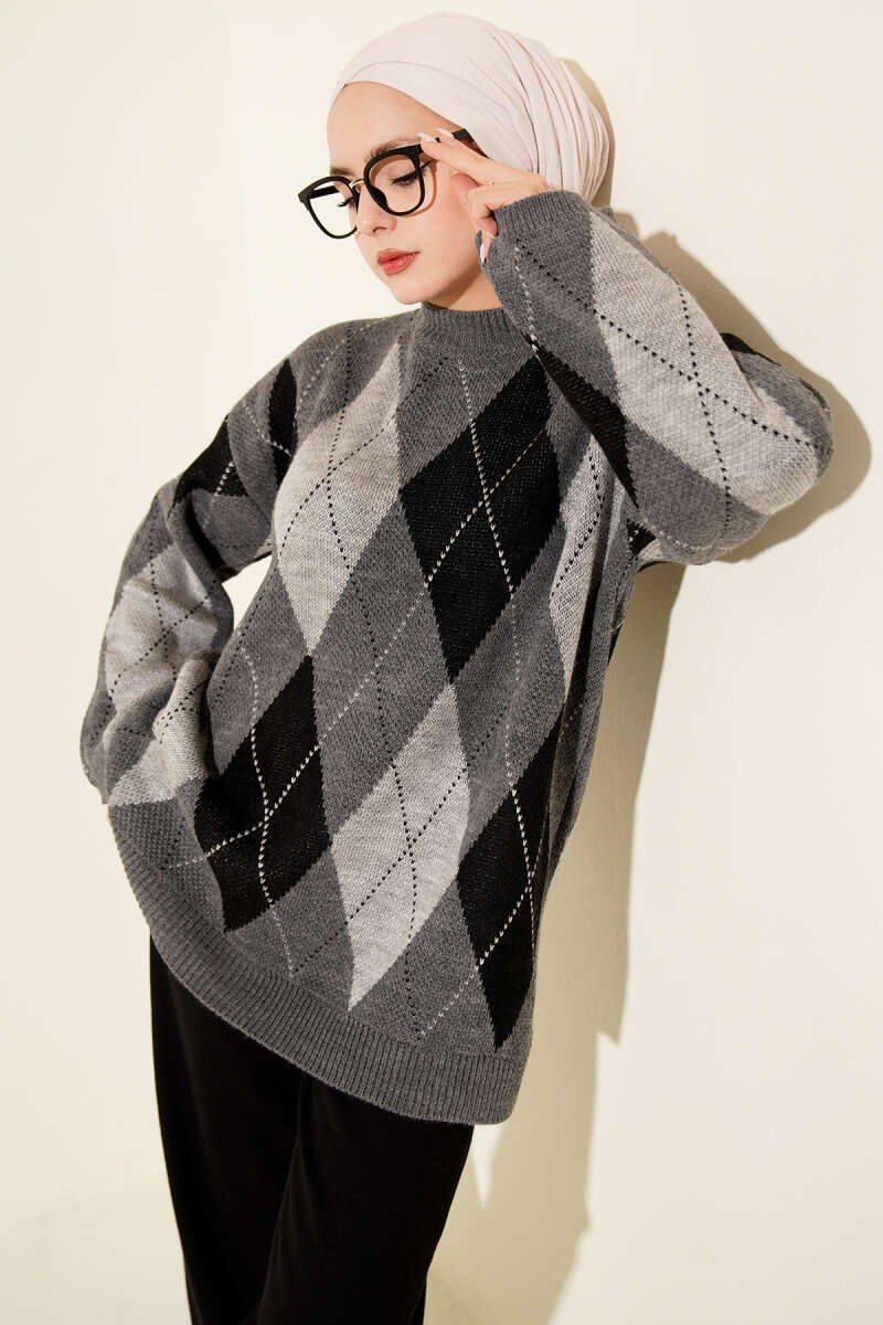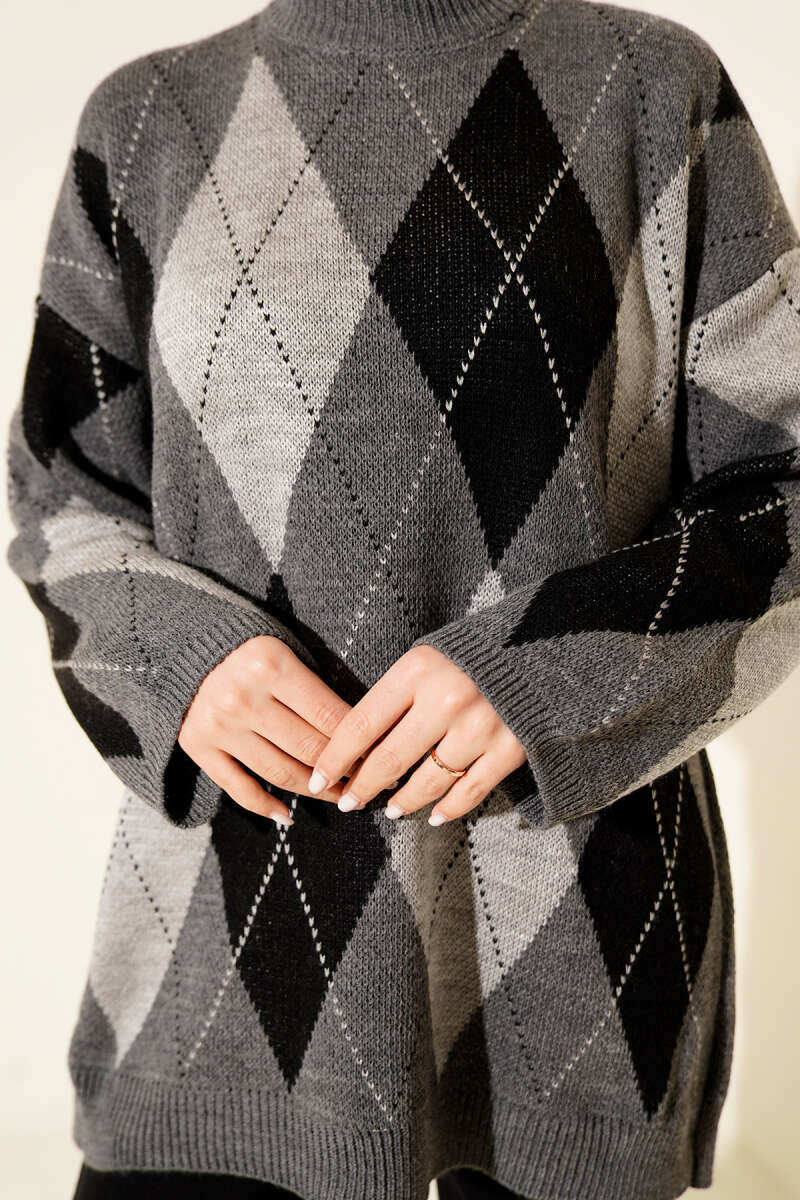 Baklava Desenli Triko Tunik Füme