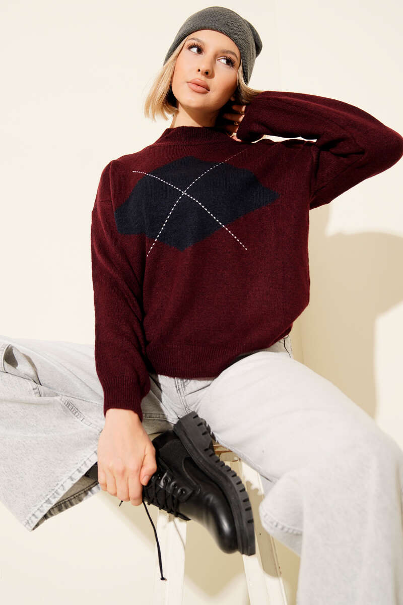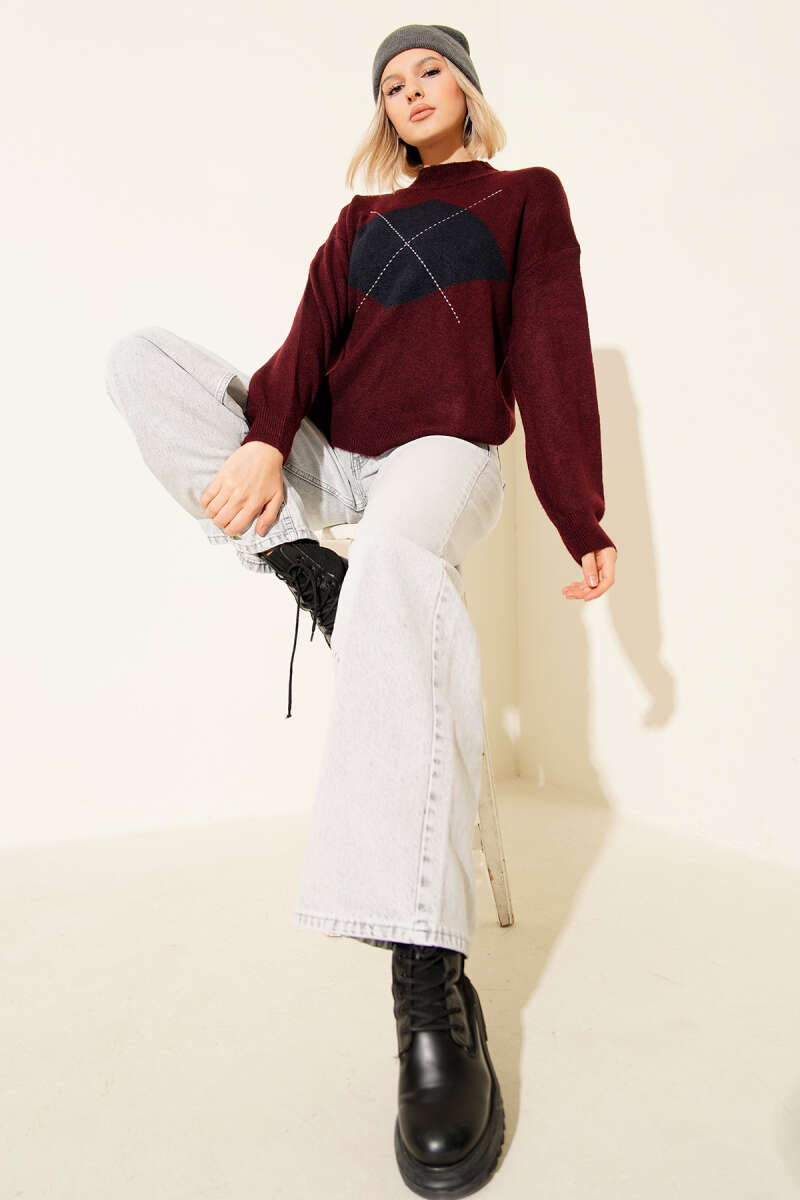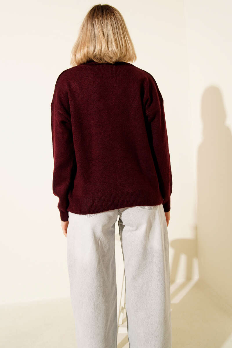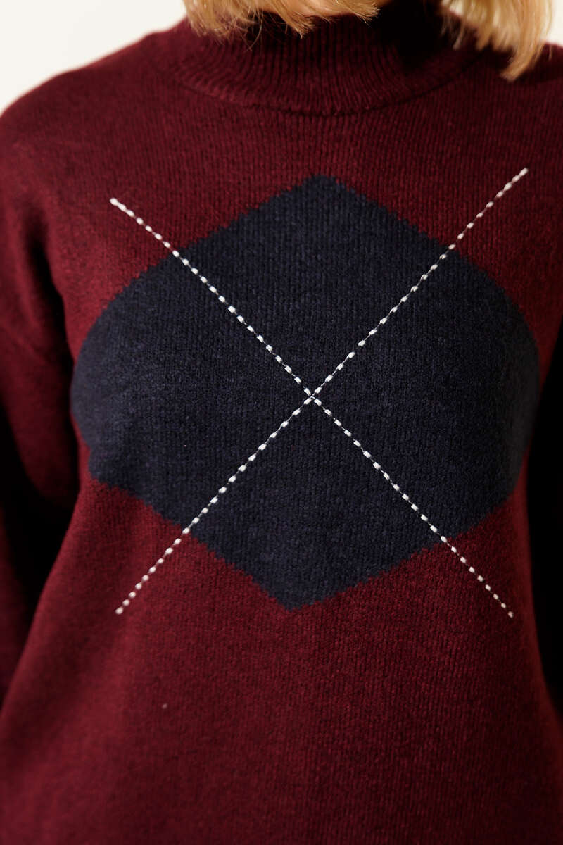 Asimetrik Kabartma Çizgili Triko Tunik Bordo