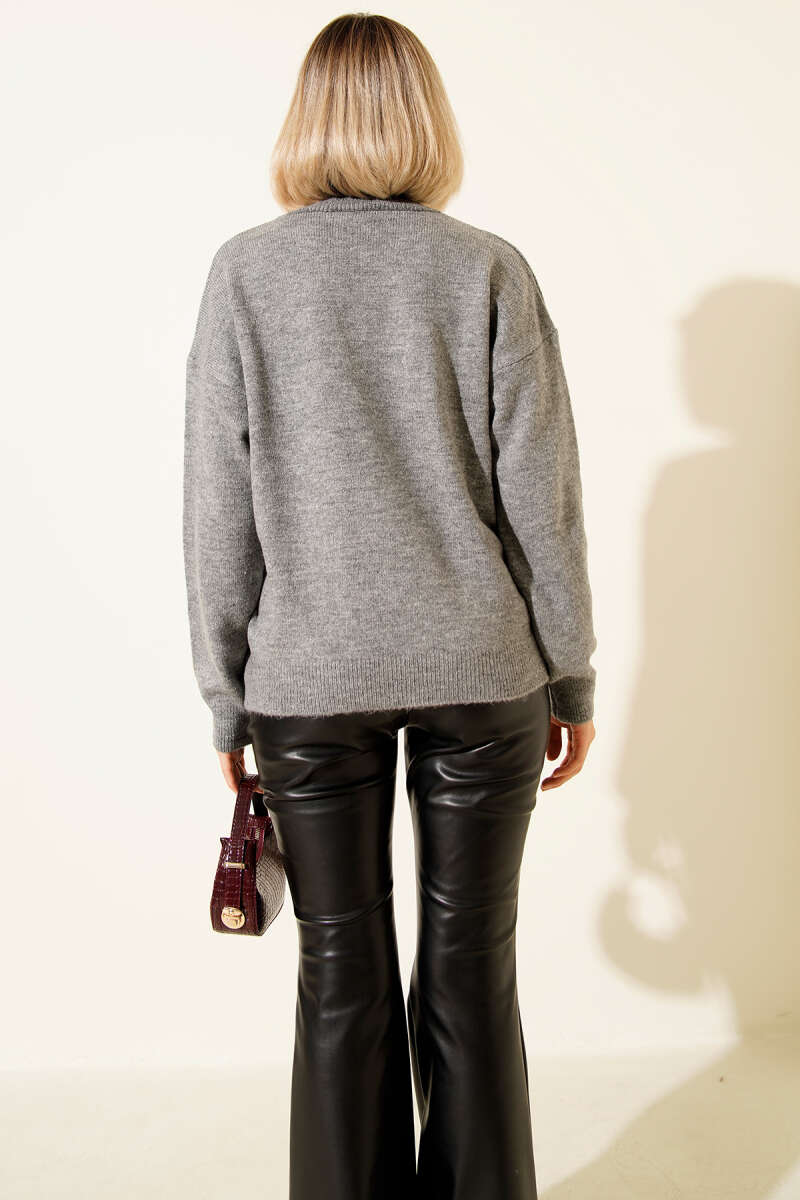 Taş Süslemeli Sakallı Kazak Siyah