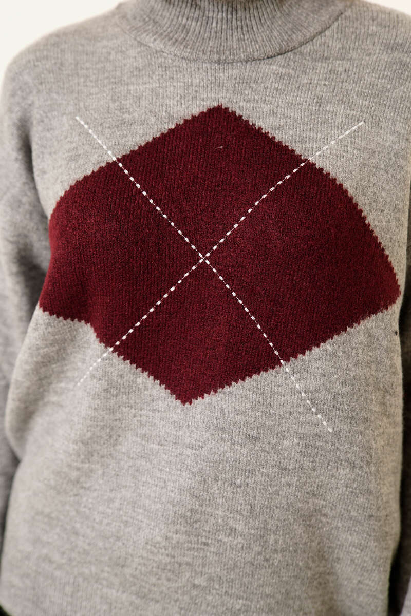 Asimetrik Kabartma Çizgili Triko Tunik Bordo