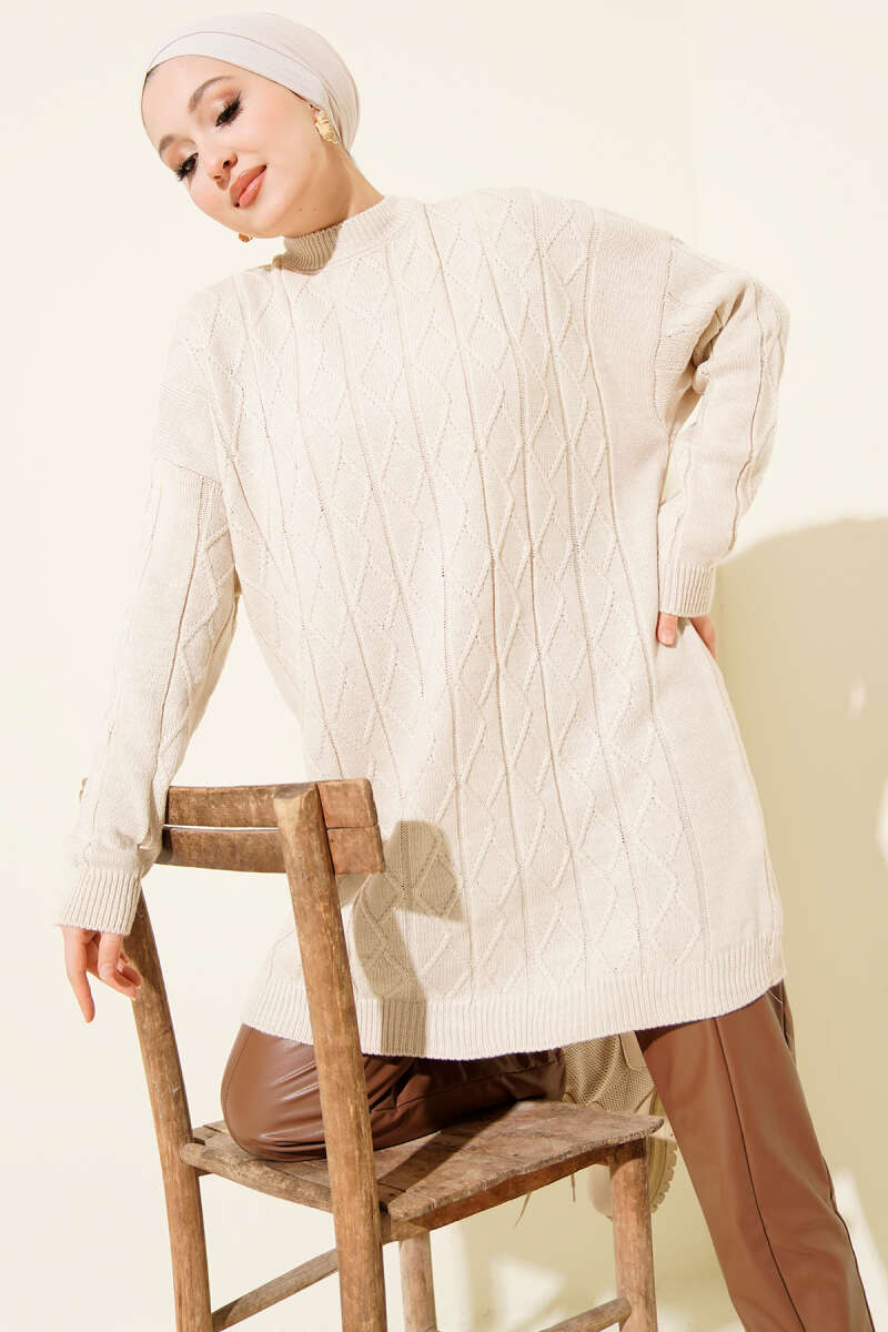 Geniş Kemerli Buklet Tunik Bej
