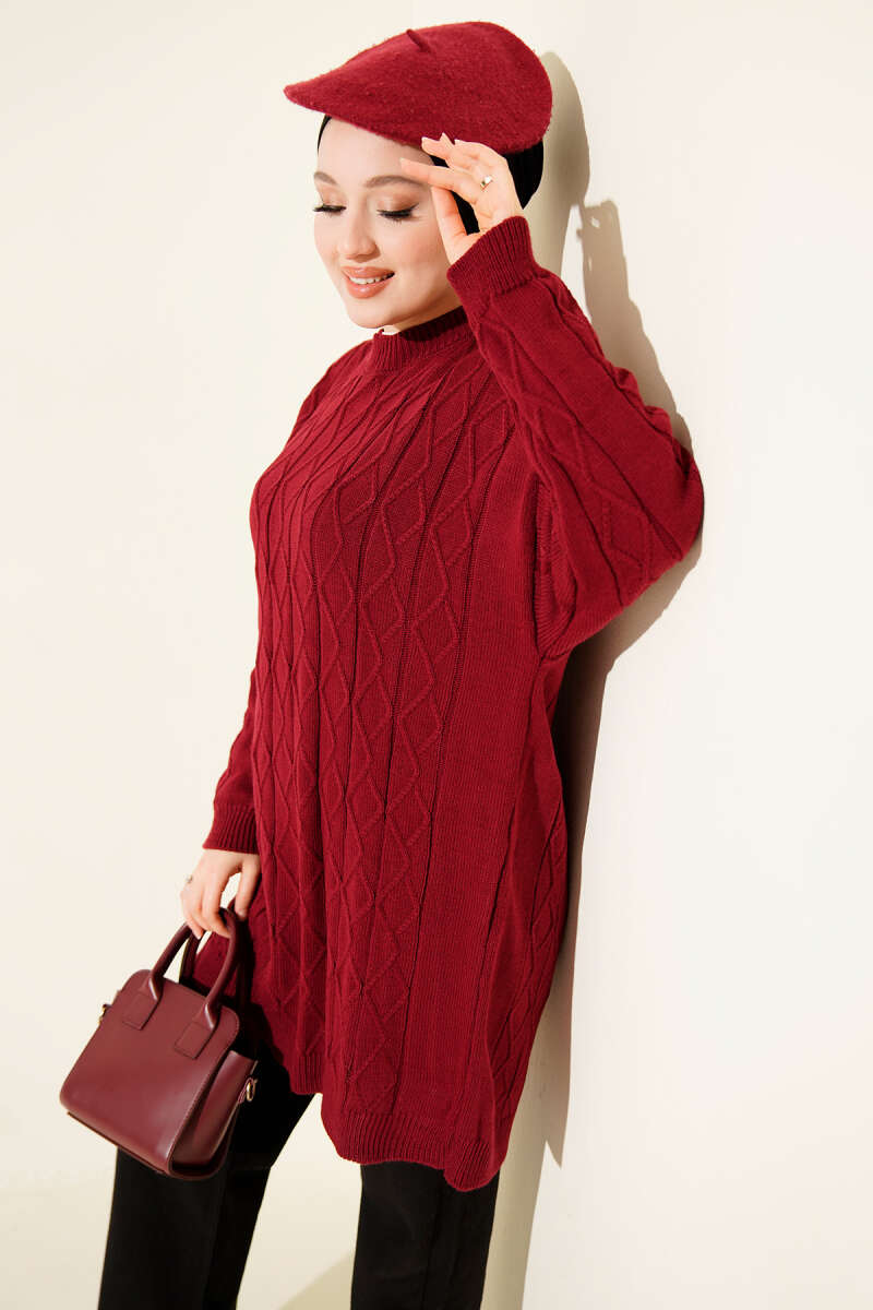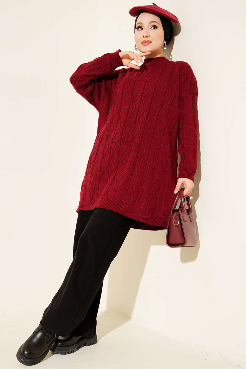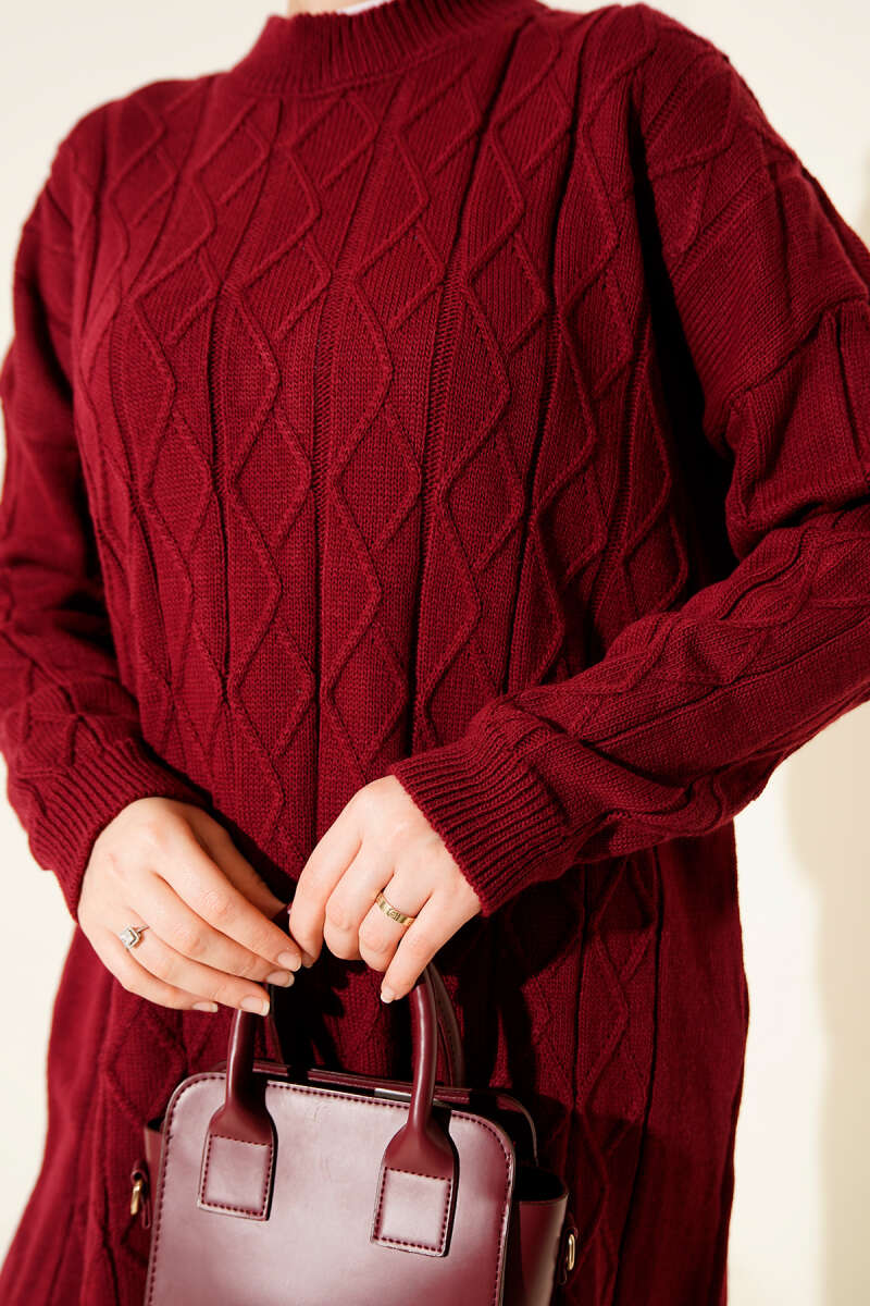 Baklava Kabartma Salaş Triko Tunik Kahve