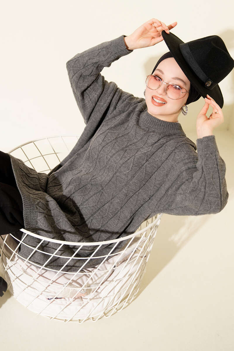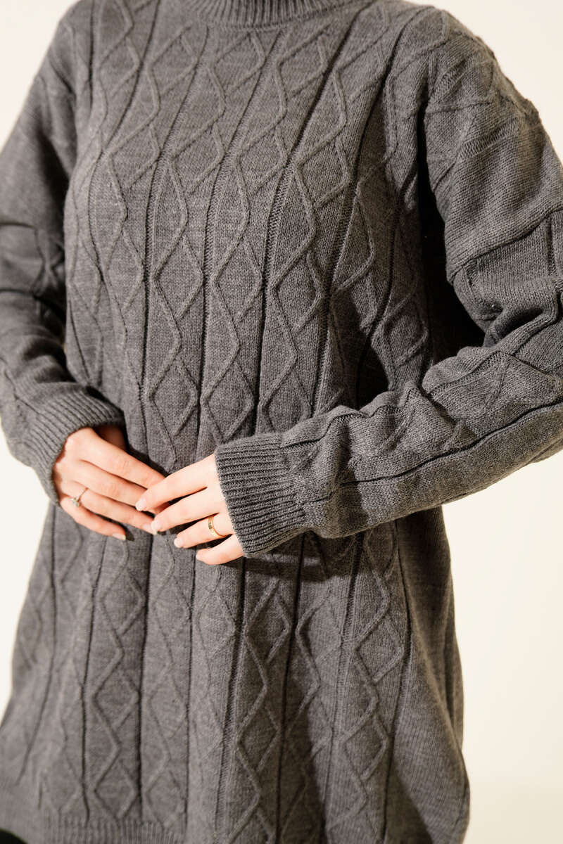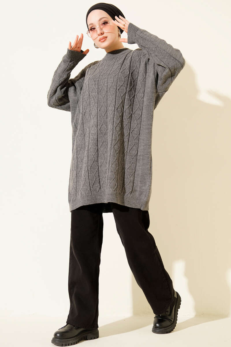 Baklava Kabartma Salaş Triko Tunik Vizon