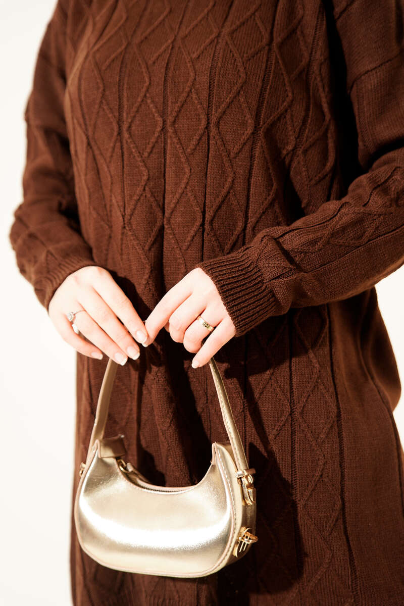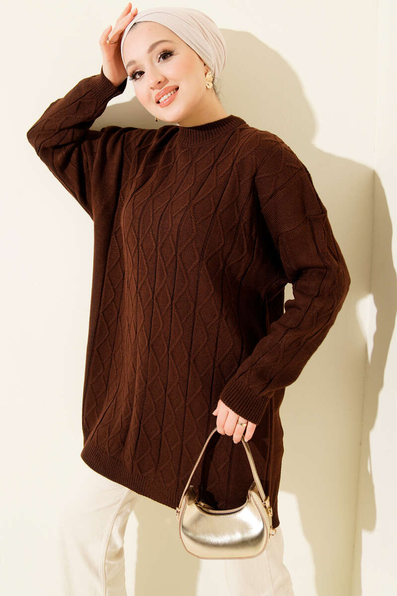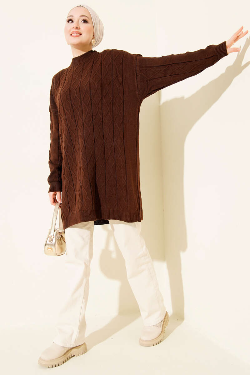 Baklava Kabartma Salaş Triko Tunik Vizon