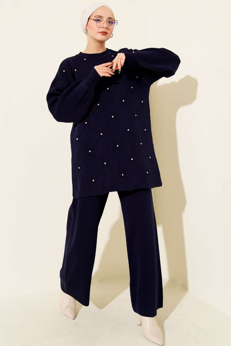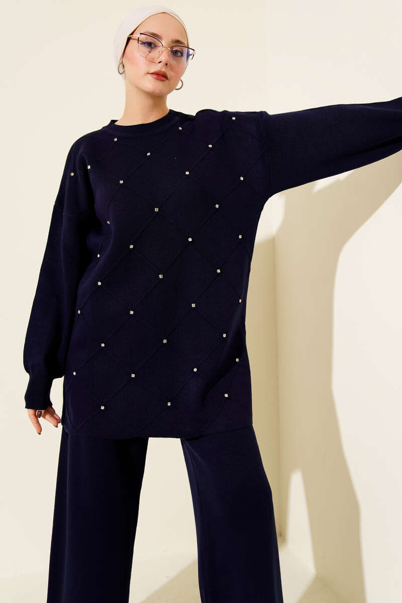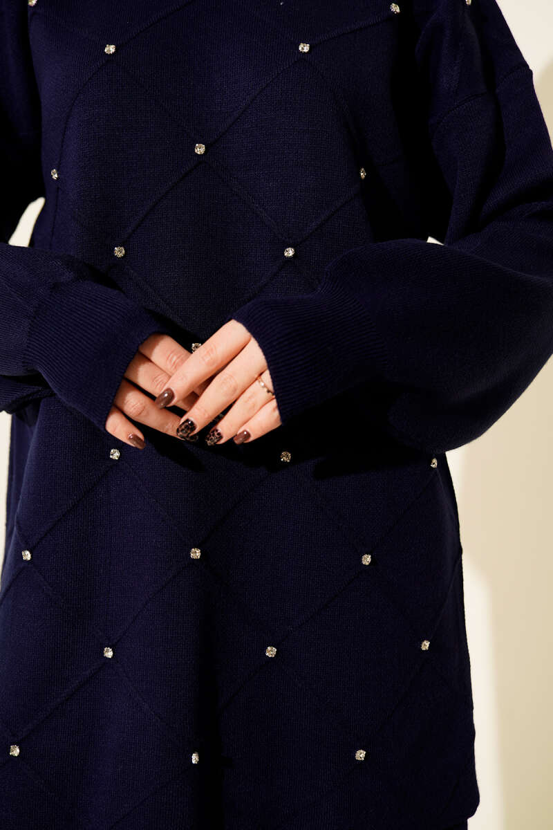 Loyşa Taşlı Piliseli Tunik Lacivert