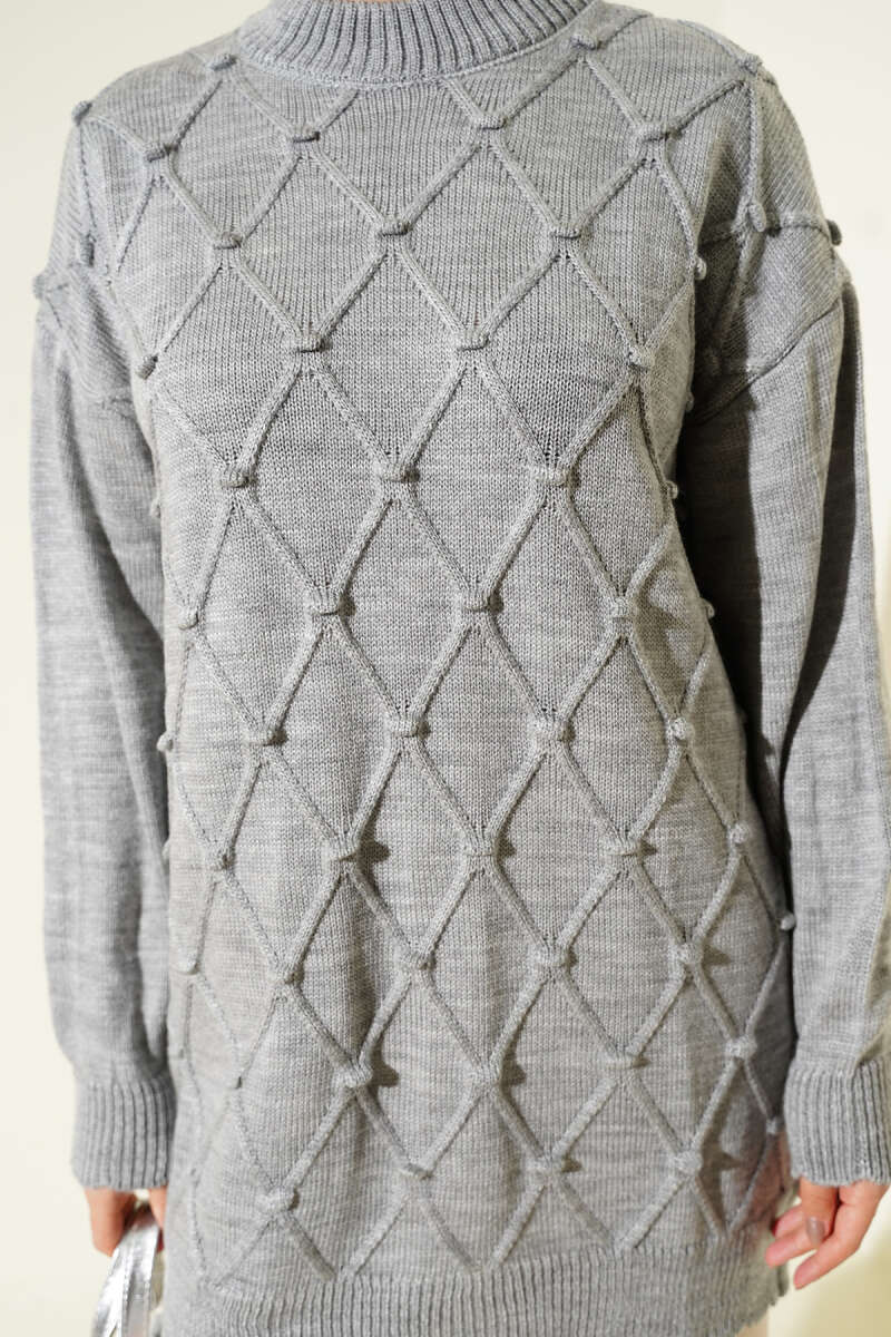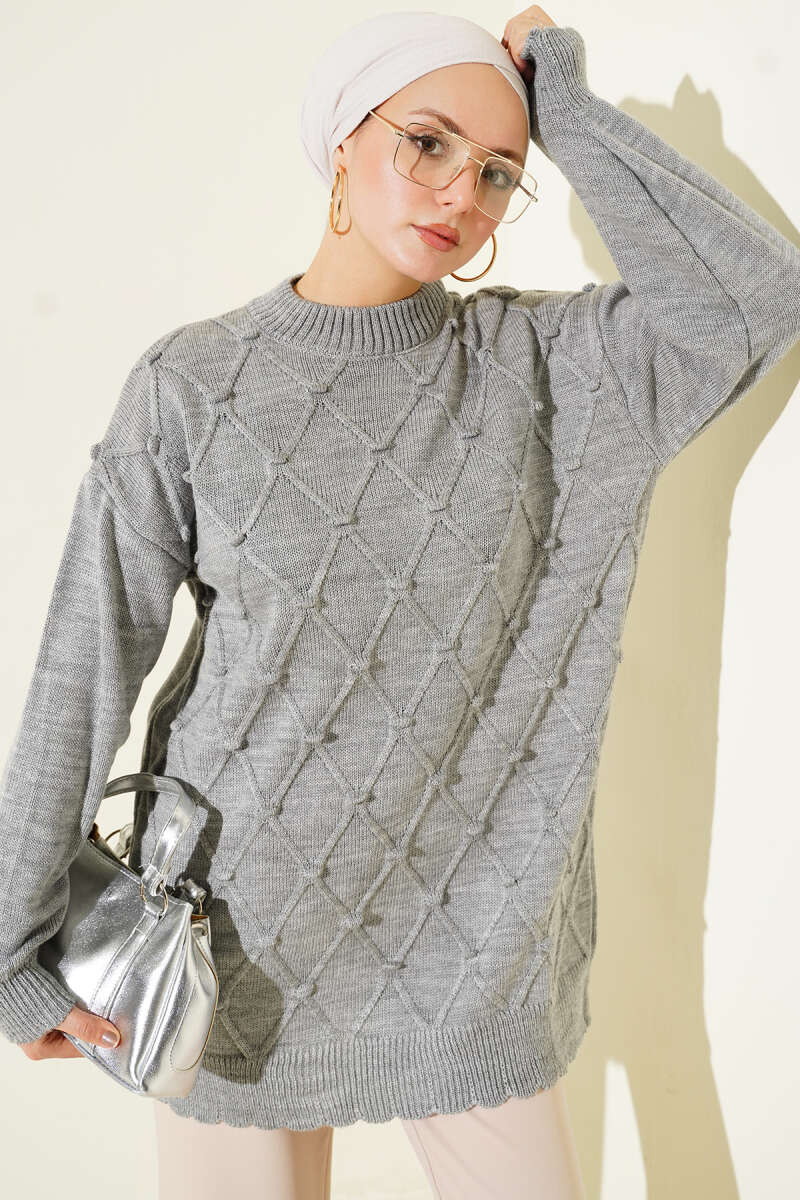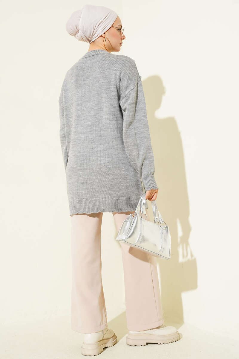 Basic Oversize Triko Tunik Gri