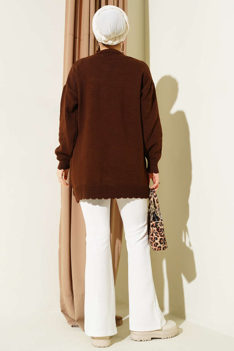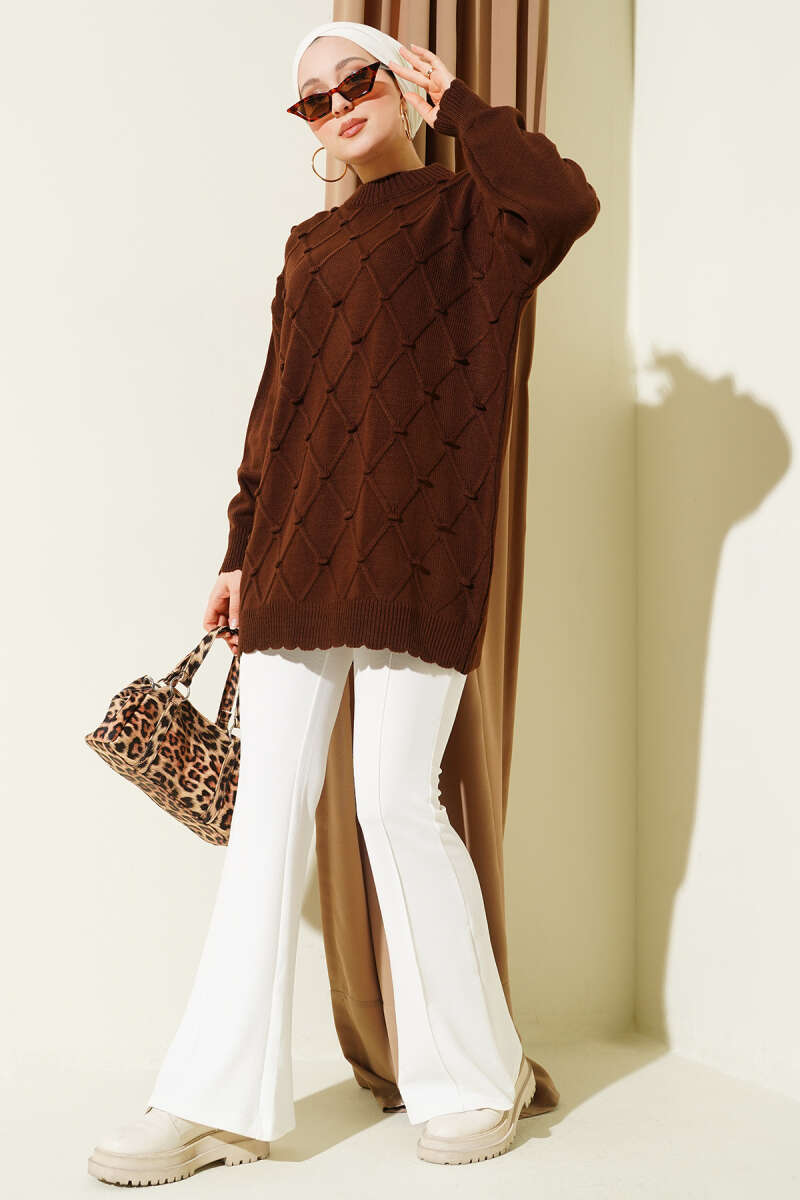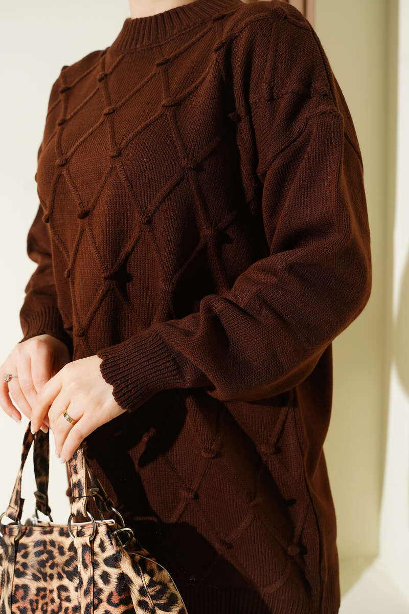 Salaş Düşük Omuz Triko Tunik Kahve
