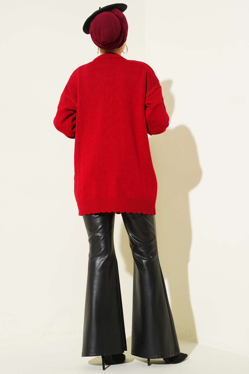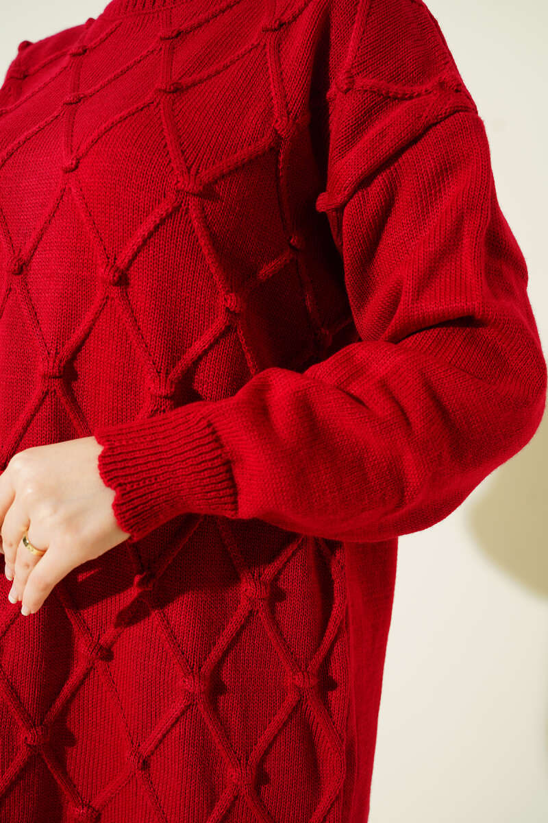 Salaş Düşük Omuz Triko Tunik Bordo