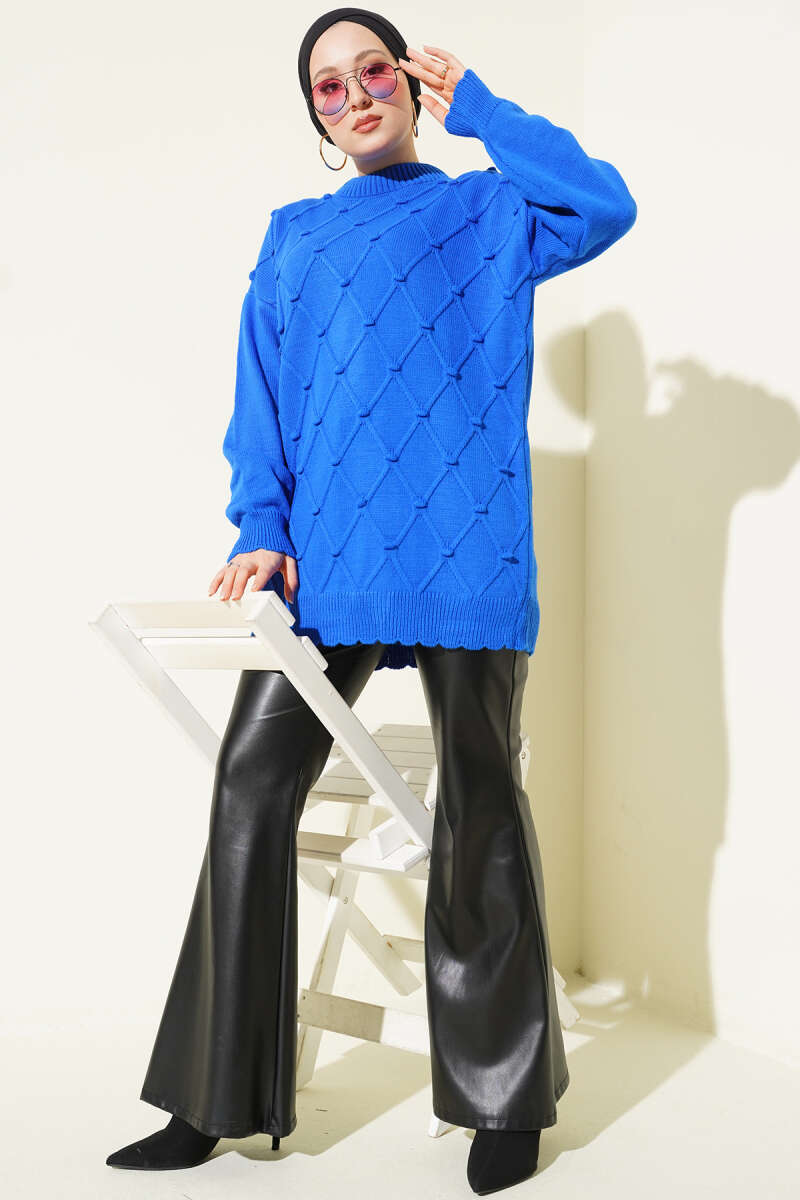 Baklava Kabartma Triko Tunik Lacivert