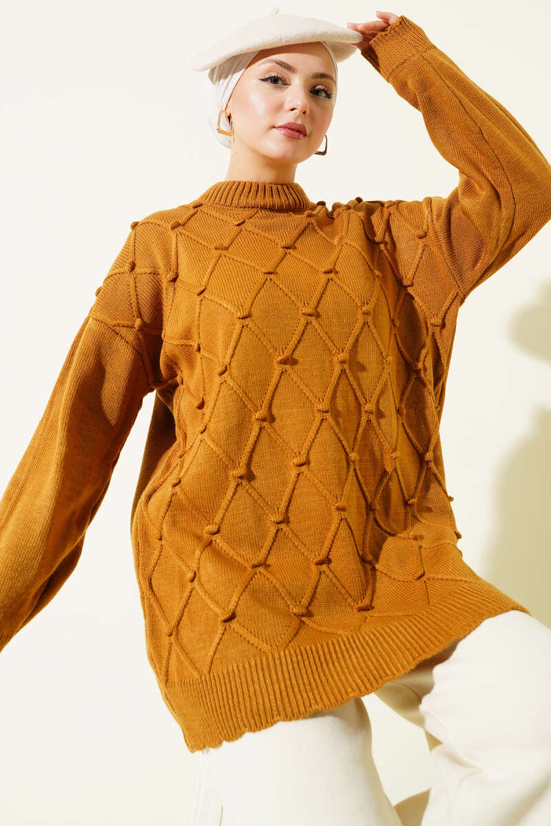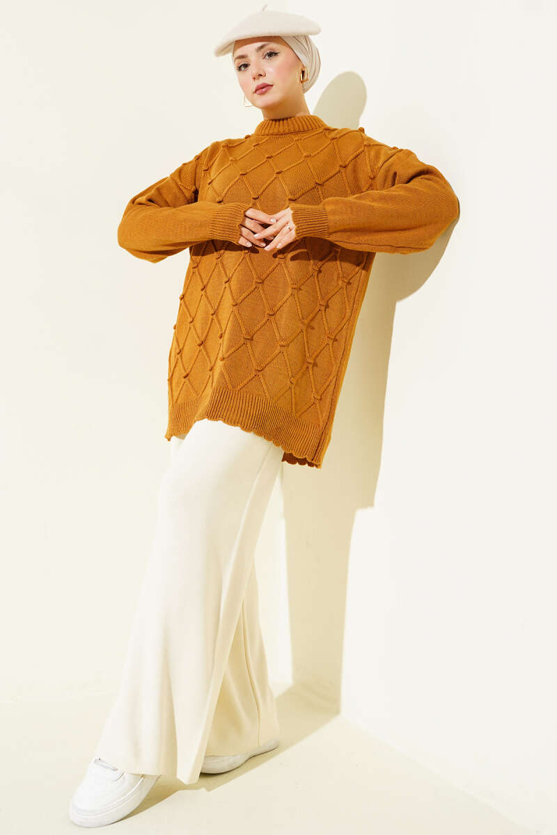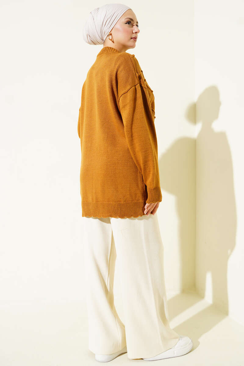 Yanı Yırtmaçlı Oversize Triko Tunik Sarı