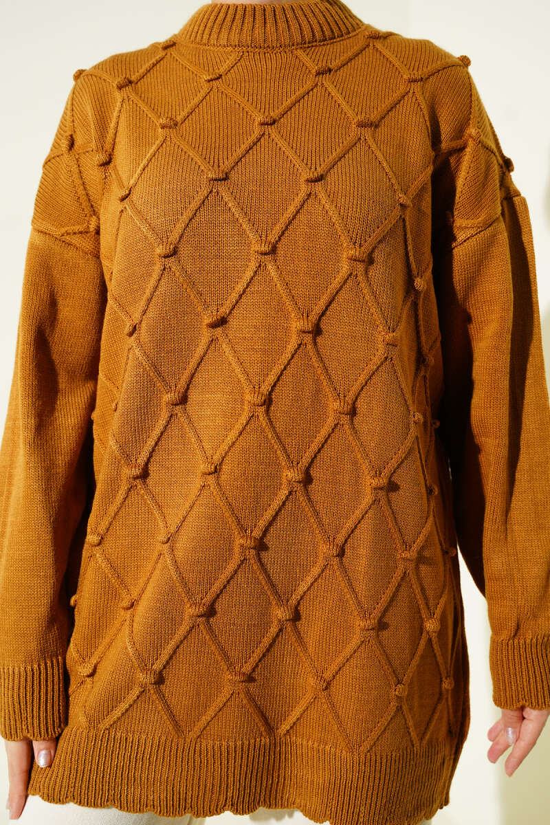 Yanı Yırtmaçlı Oversize Triko Tunik Pudra