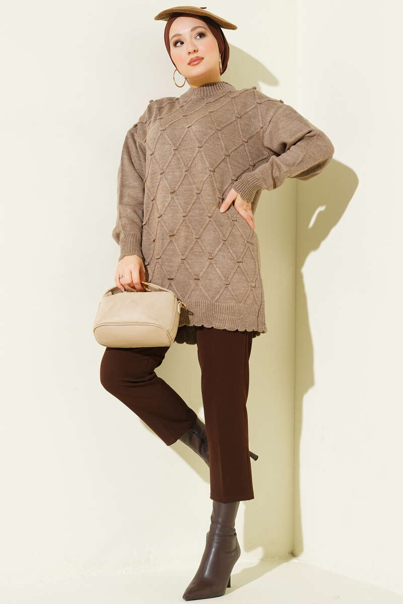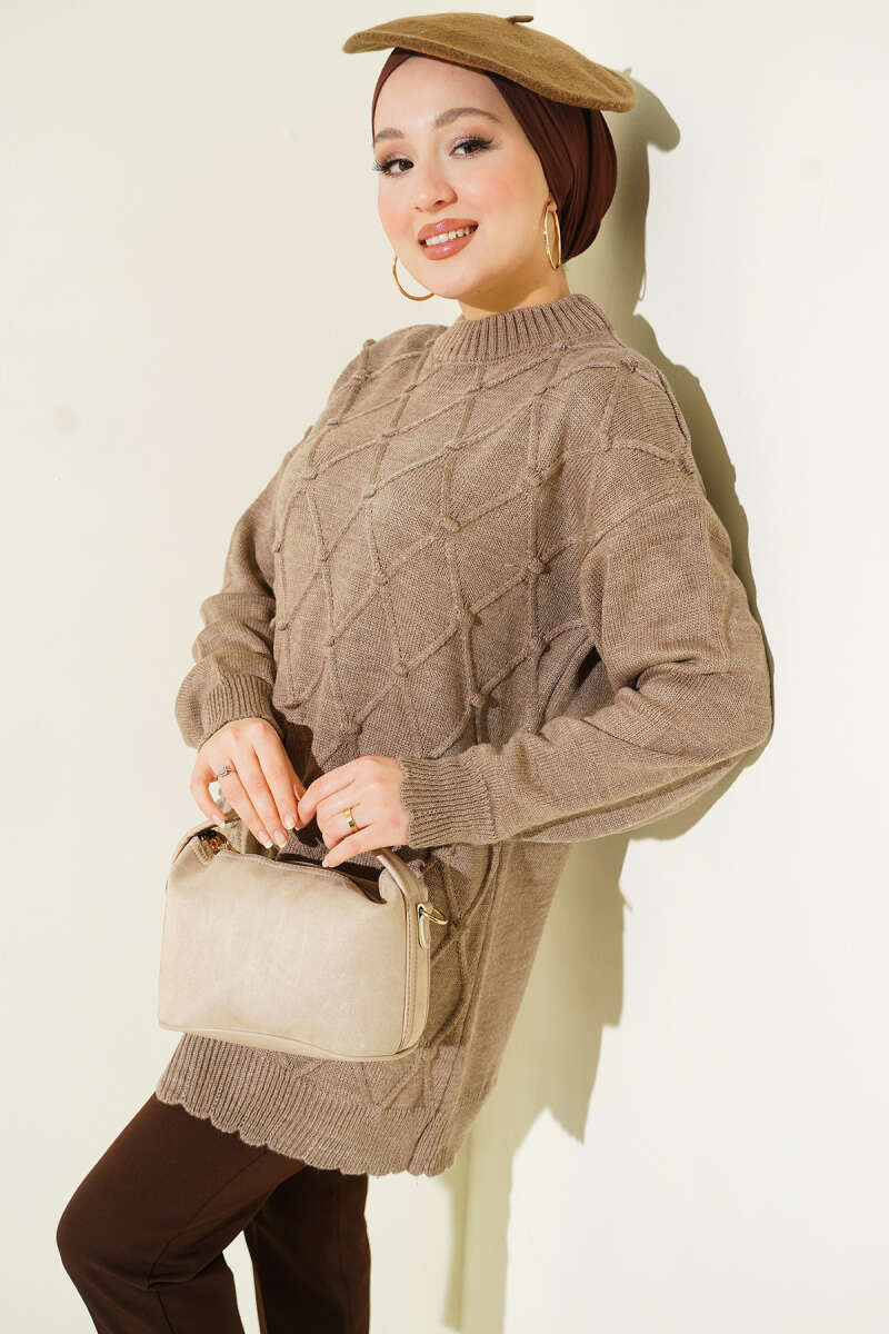 Salaş Bisiklet Yaka Simli Triko Tunik Vizon