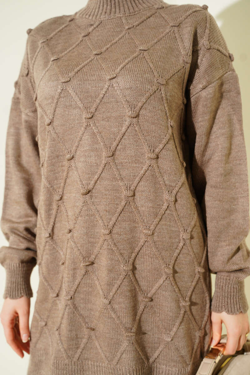 Salaş Düşük Omuz Triko Tunik Kahve