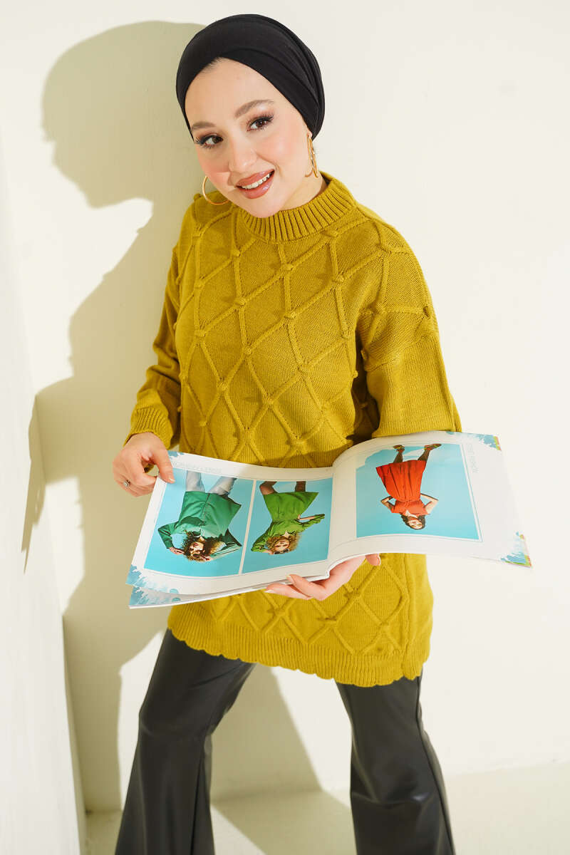 Salaş Bisiklet Yaka Simli Triko Tunik Vizon
