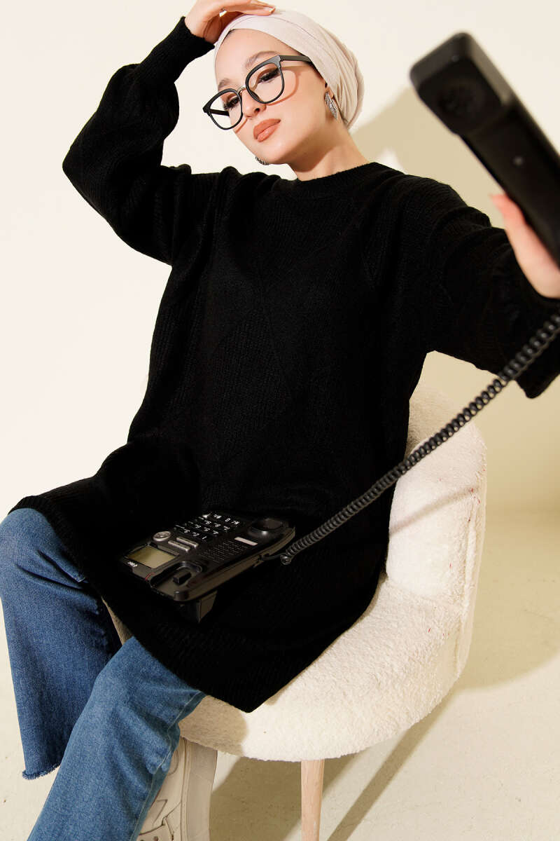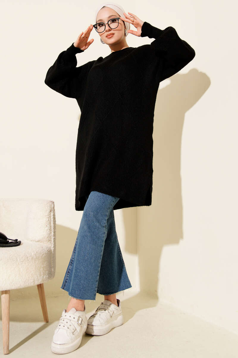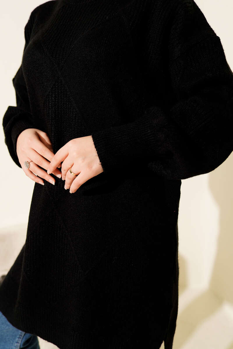Çizgi Kabartmalı Merserize Triko Tunik Pembe