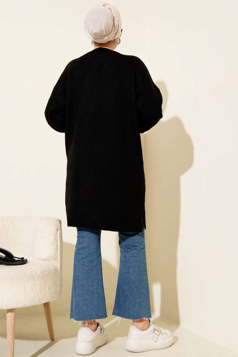 Düğmeli Kuşaklı Araboy Trençkot Siyah