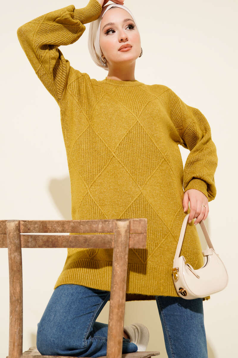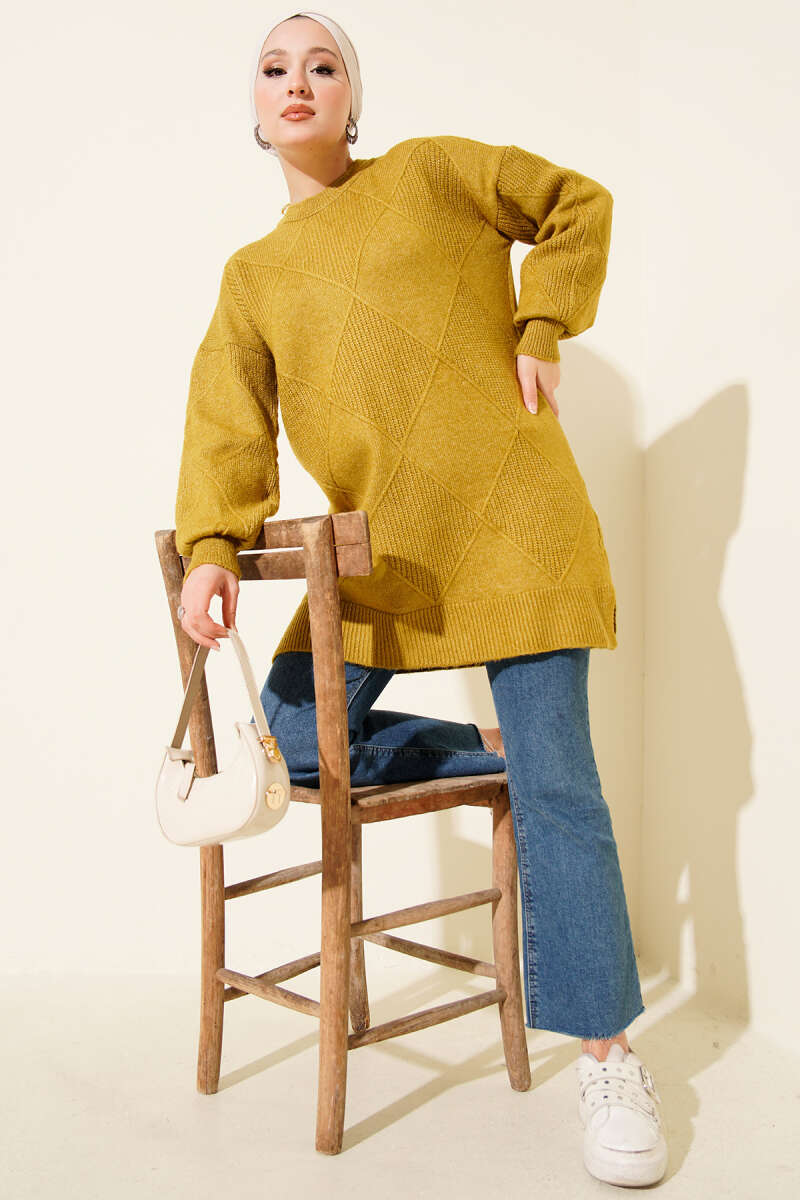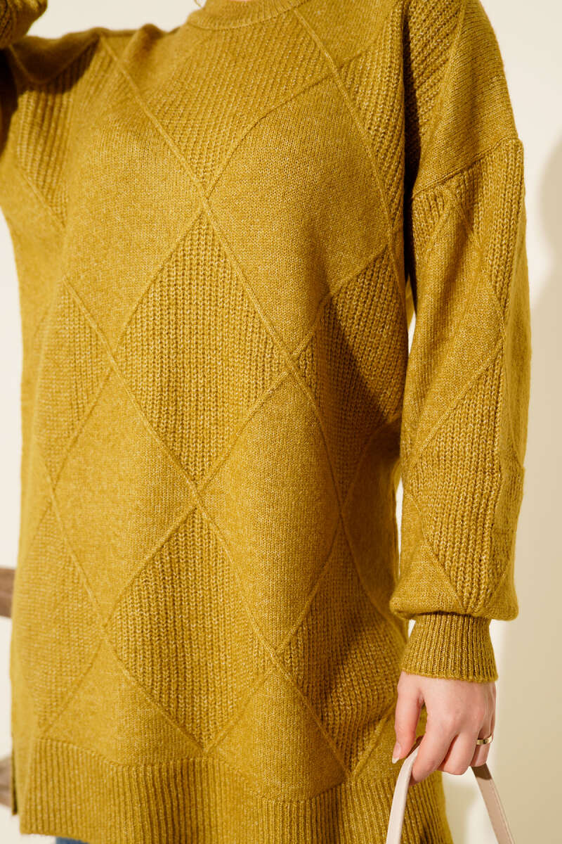 Çizgi Kabartmalı Merserize Triko Tunik Pembe