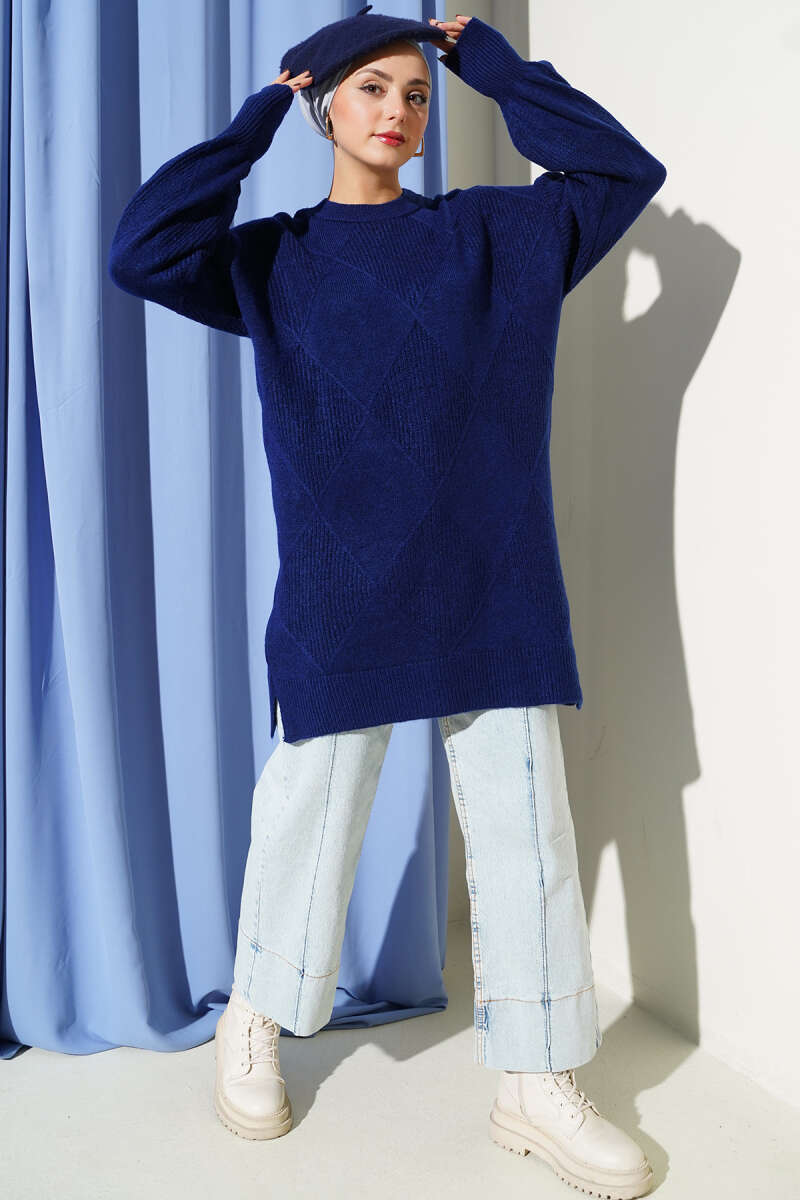 Baklava Desenli Basic Triko Tunik Taş