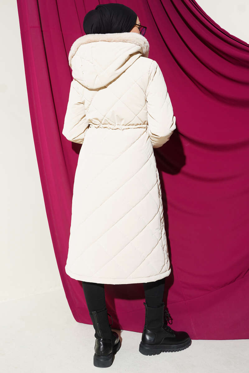 Baklava Kapitone Kapüşonlu Mont Vizon