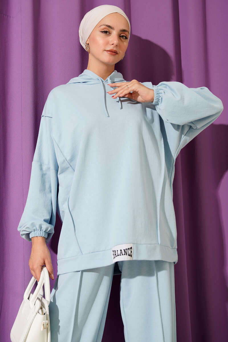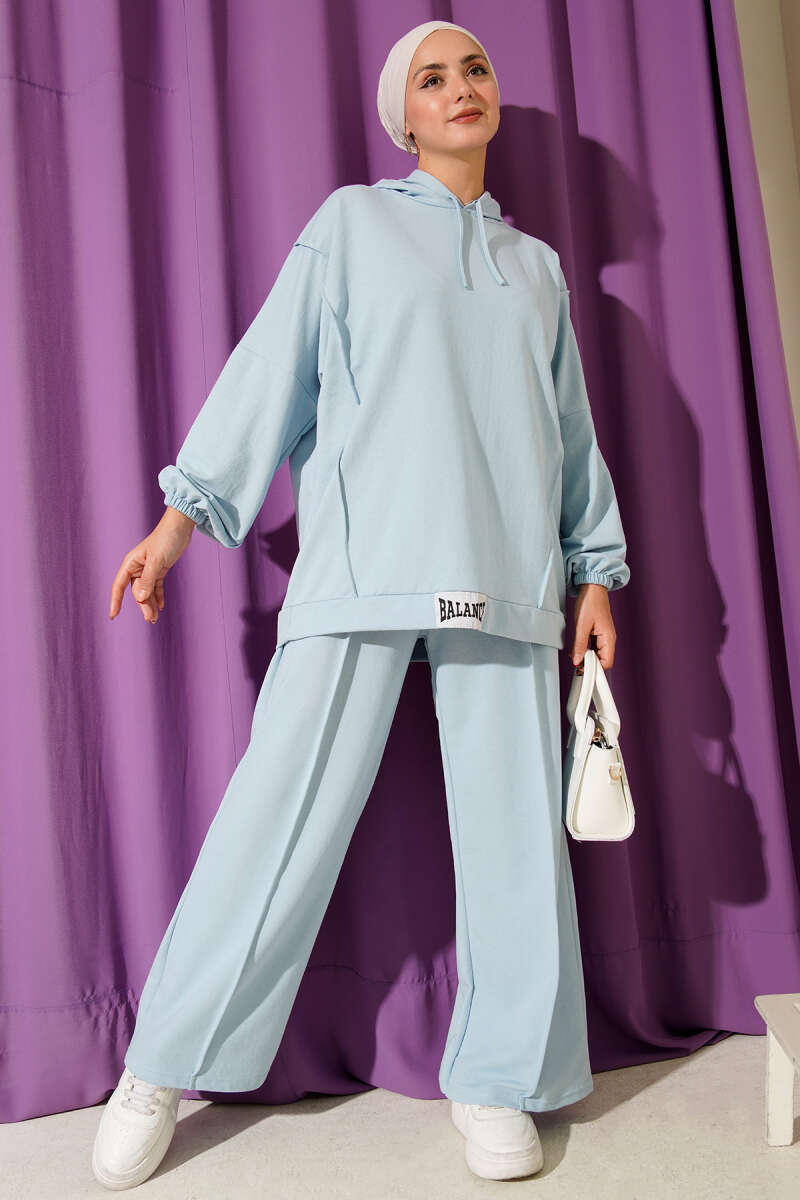 Yarım Fermuarlı Loyşa Şeritli İkili Takım Füme