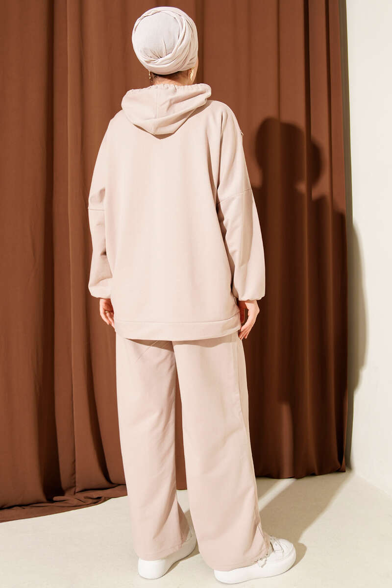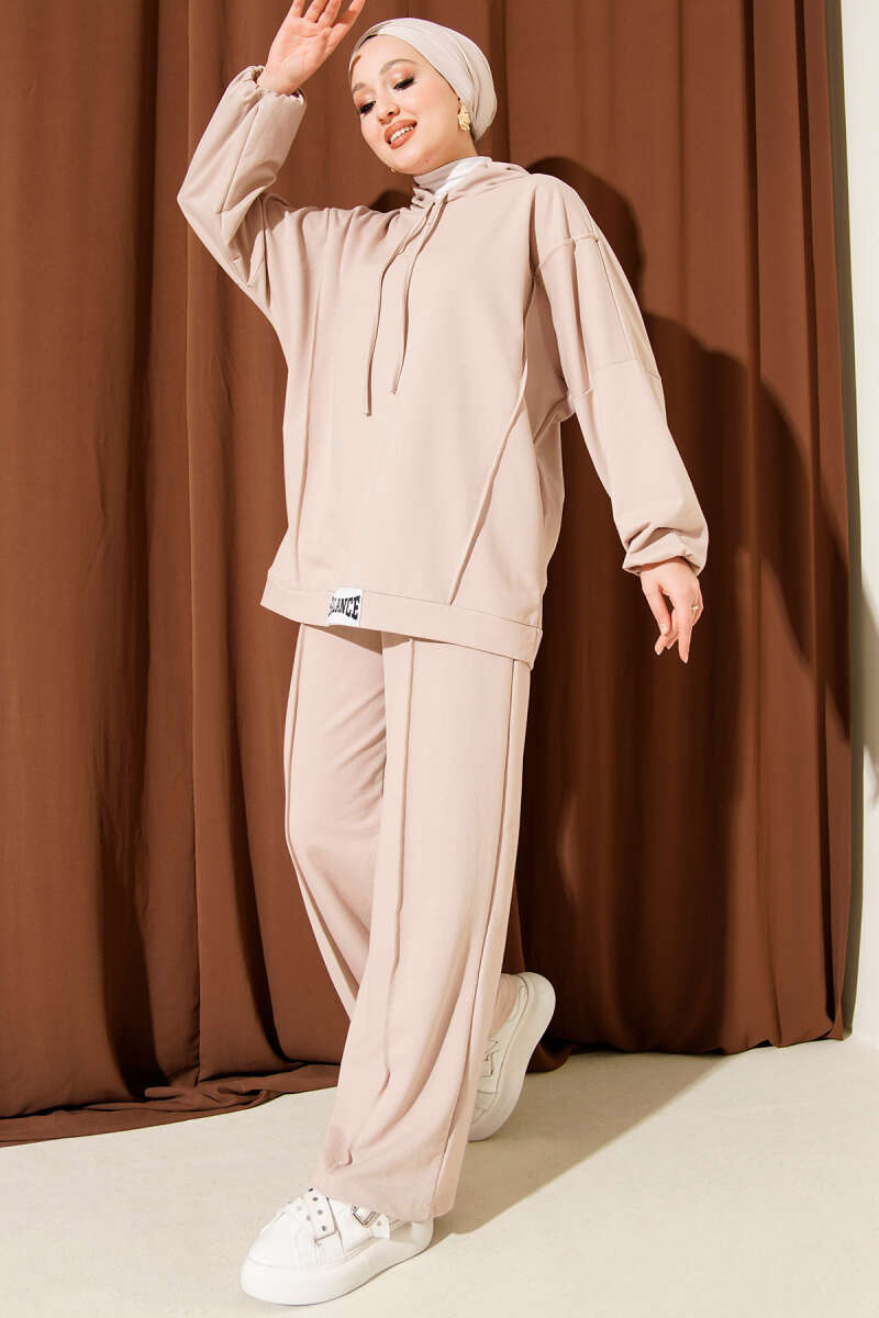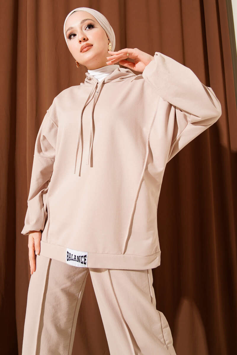 Balance Armalı Kapüşonlu Salaş İkili Takım Bej