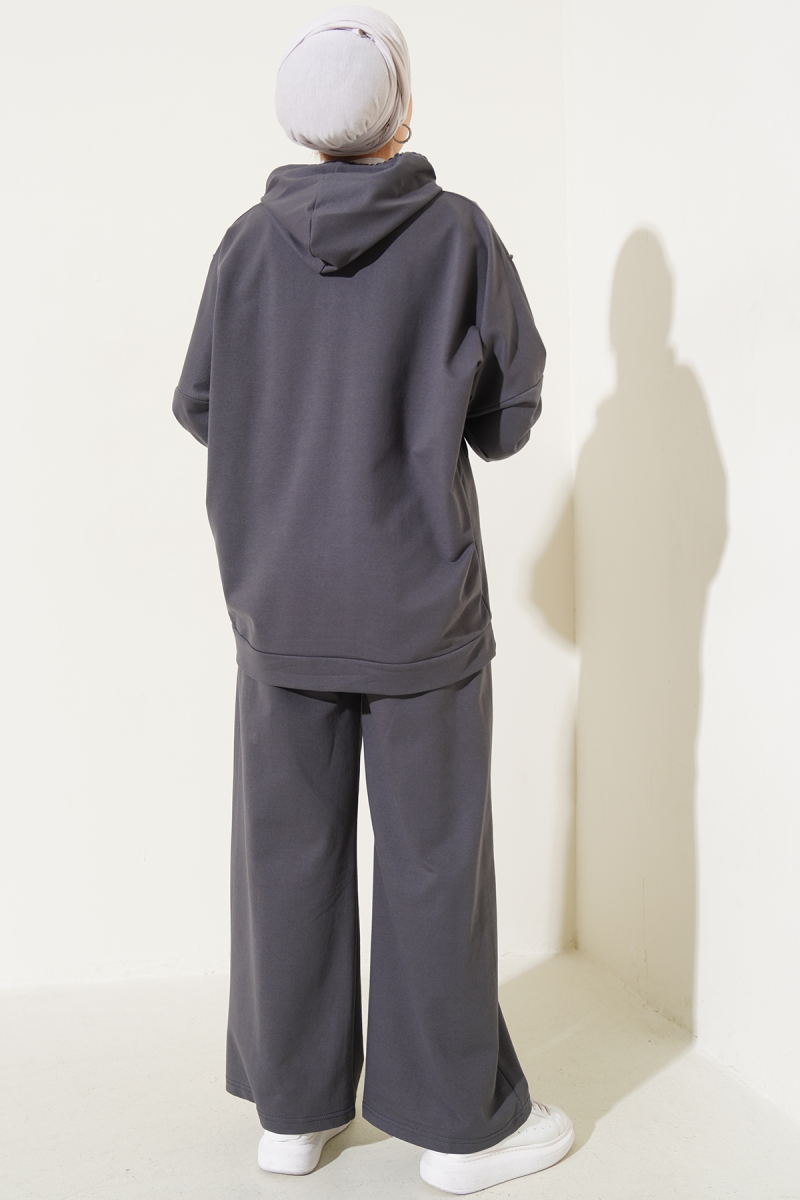 Balance Armalı Kapüşonlu Salaş İkili Takım Melanj Gri