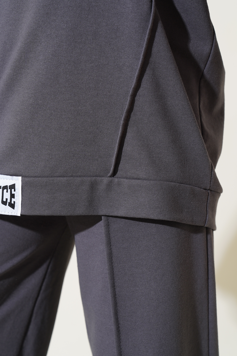Asimetrik Kesim Bisiklet Yaka İkili Takım Gri