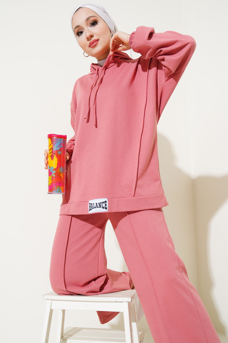 Balance Armalı Kapüşonlu Salaş İkili Takım Pudra