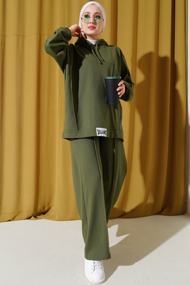 Balance Armalı Kapüşonlu Salaş İkili Takım Haki
