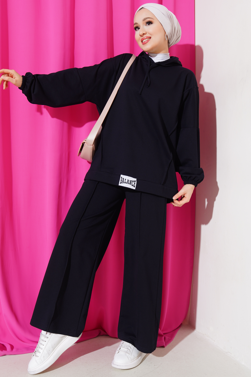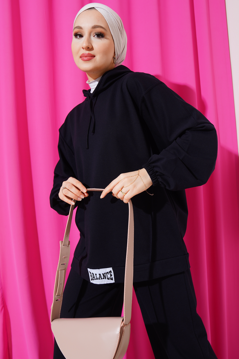 Balance Armalı Kapüşonlu Salaş İkili Takım Siyah