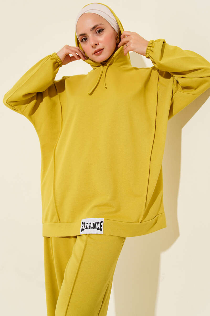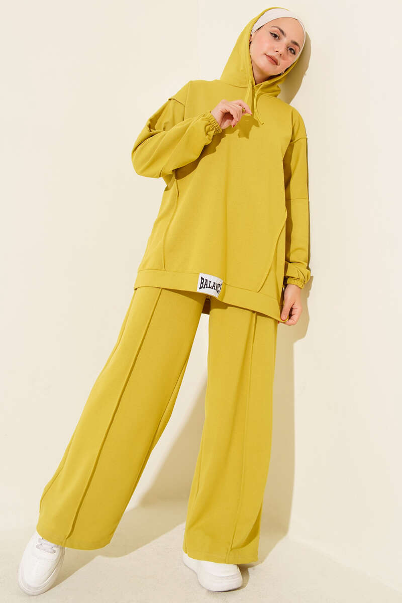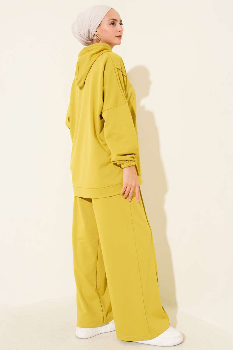 Yarım Fermuarlı Loyşa Şeritli İkili Takım Çağla Yeşili