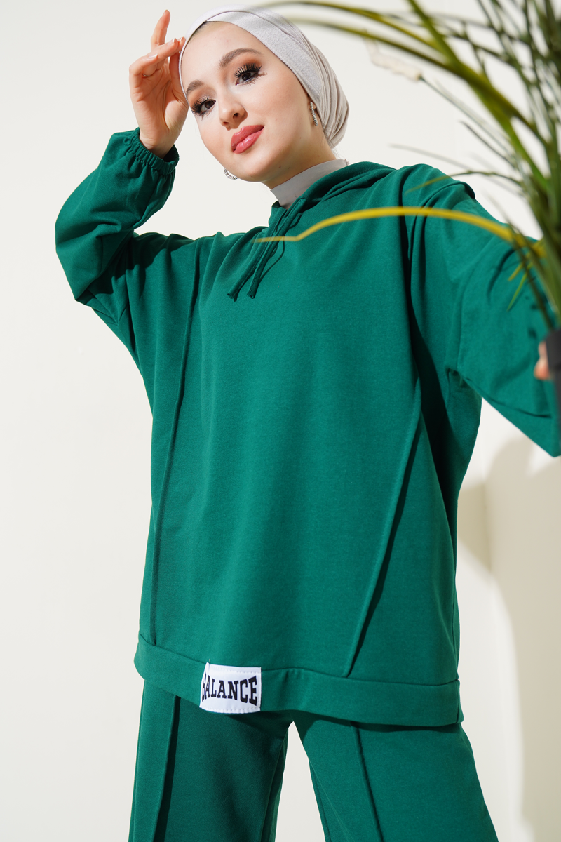 Balance Armalı Kapüşonlu Salaş İkili Takım Çağla Yeşili