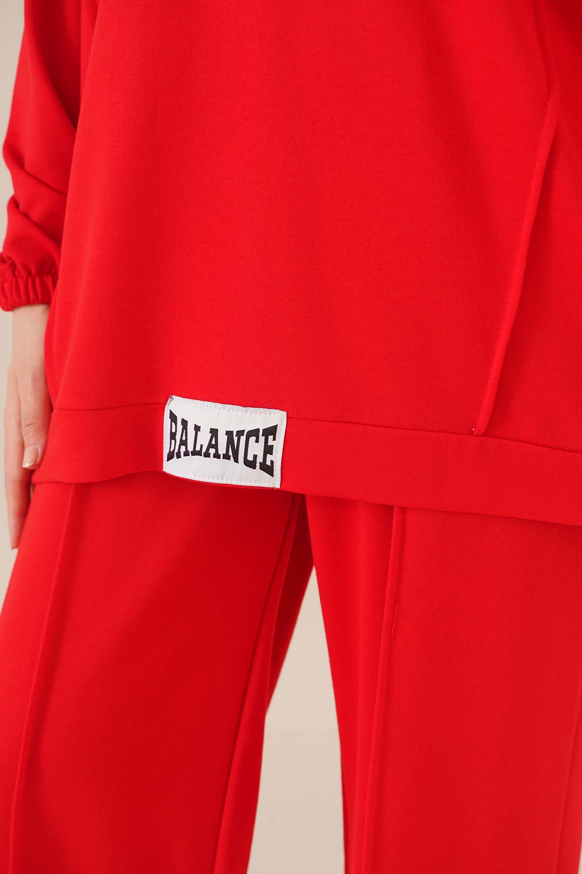Balance Yazı Armalı Kapüşonlu Kırmızı İkili Takım