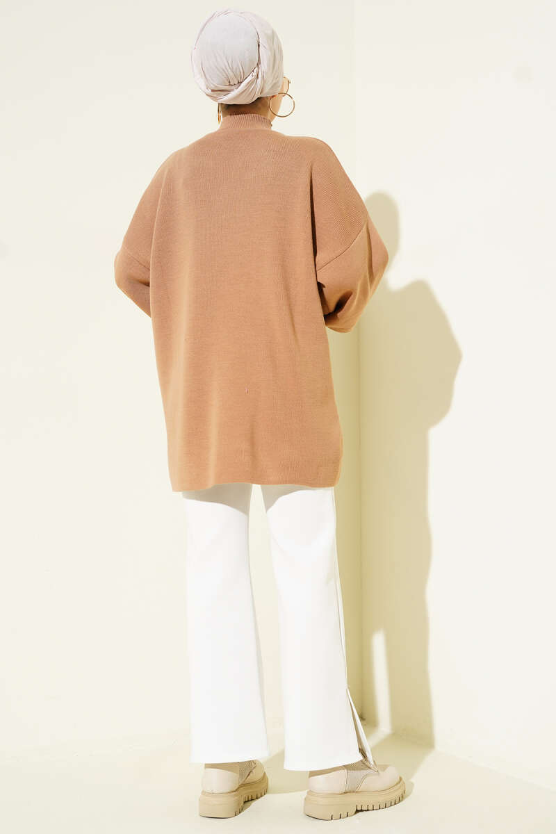 Balıkçı Yaka Balon Kol Triko Tunik Latte
