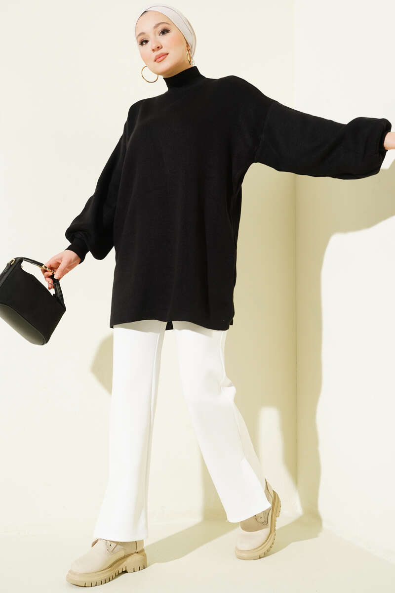 Balıkçı Yaka Balon Kol Triko Tunik Siyah