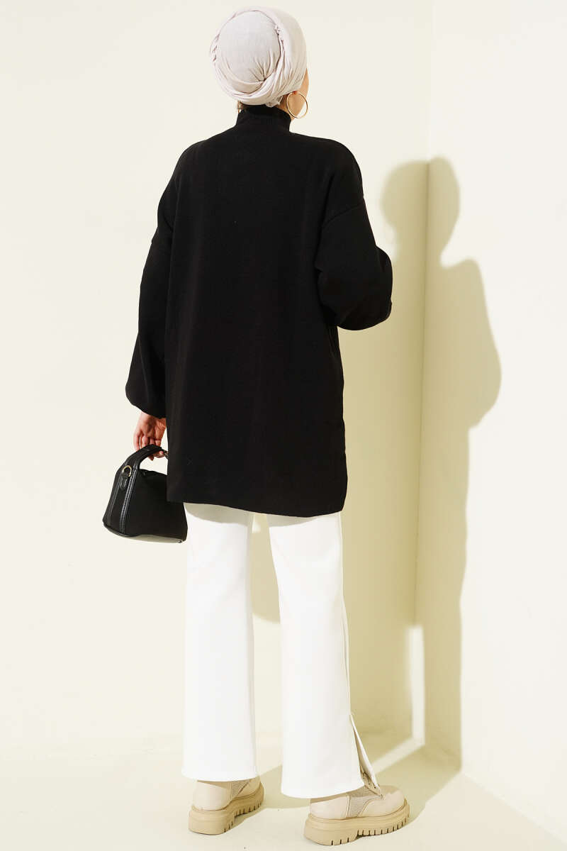 Yan Yırtmaçlı Duble Kol Tunik Siyah