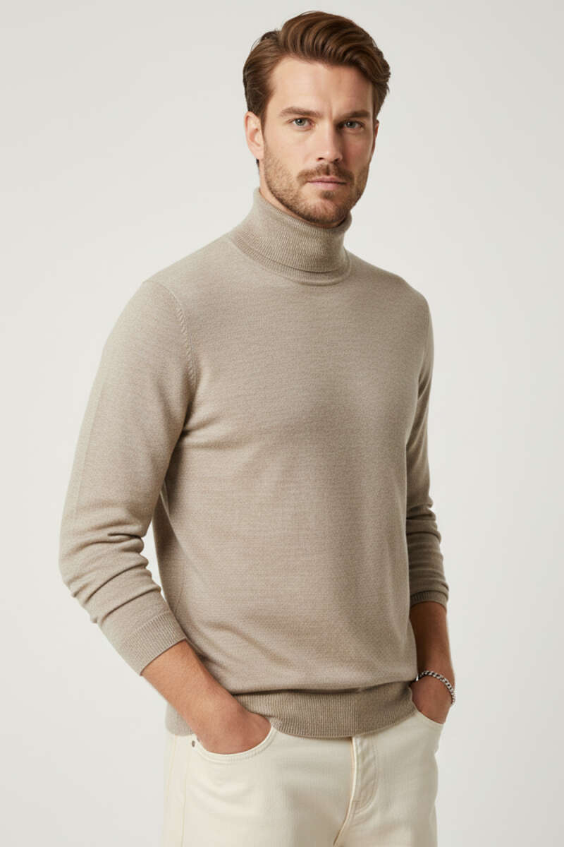 Balıkçı Yaka Basic Erkek Triko Kazak Gri